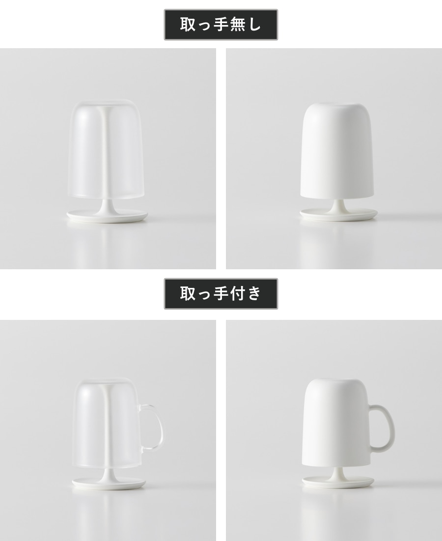 すっきりとしたフォルムの取っ手無しのコップとお子さまでも使いやすい持ち手付きのコップの2タイプからお選びいただけます。
