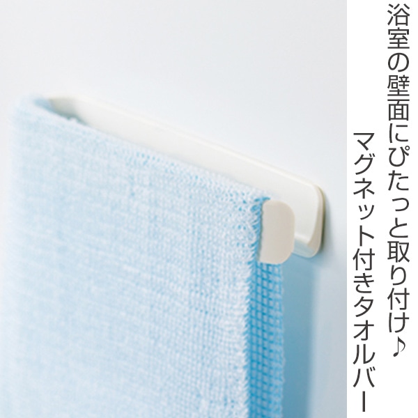 使いやすいかたち片側があいている「コの字型」で、タオルを横からサッと掛けられます。 | さびないラバーマグネットさびないラバーマグネットを使用。滑り止めも付いているので、ズレにくくなっています。 |