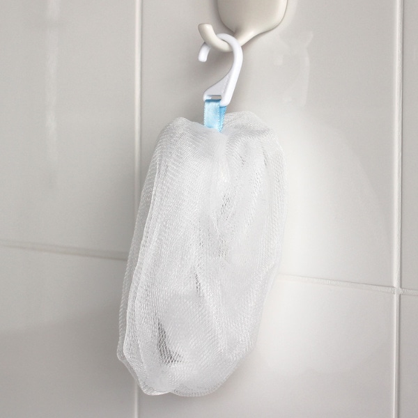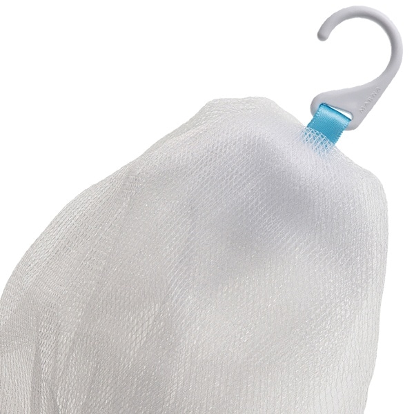 4層構造の柔らかネットで、絞りやすいようにネットの長さにもこだわっています。絞った泡は逆さにしても垂れないほどの濃密さです。また、フックがついているので引っ掛けて乾燥しやすく衛生的です。