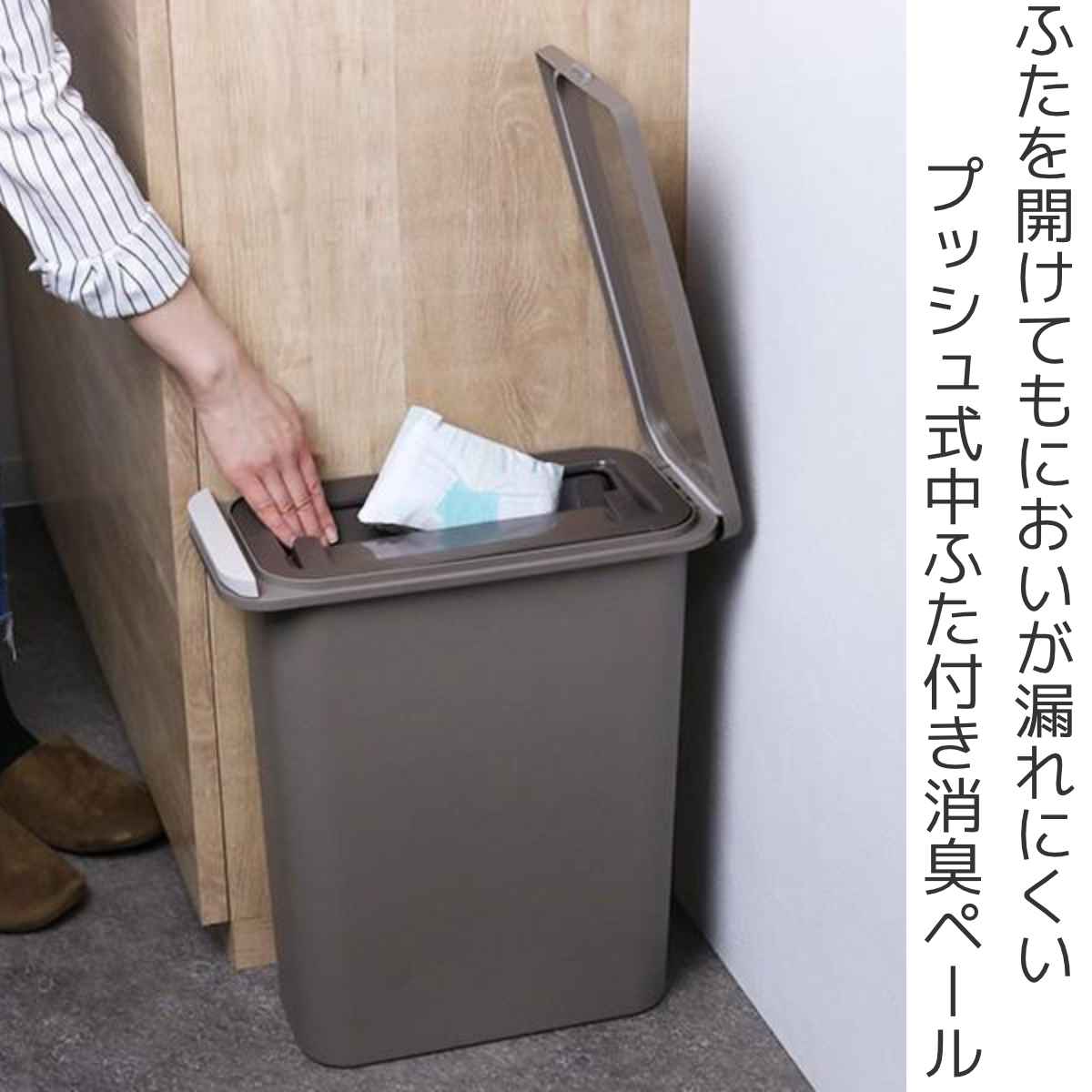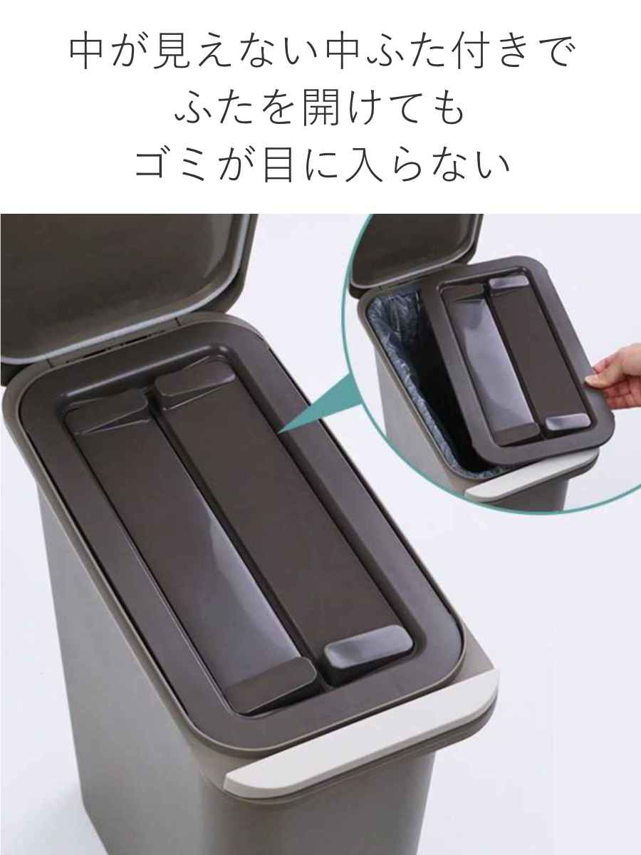 中ふた付きなので、上部のふたを開けても不快なゴミが目に入らず、におい漏れも防ぎます。