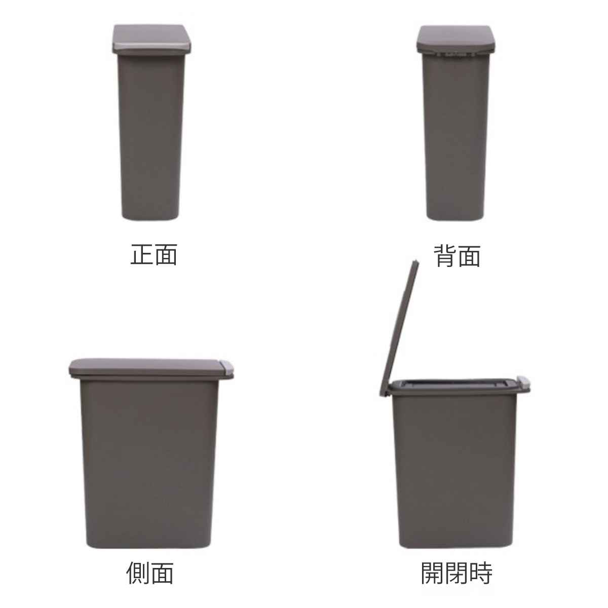 | 材質 | 本体・フタ・バネ部品・プッシュ部品・袋止め・フラップ枠・フラップ:ポリプロピレン 蓋用バネ:鋼 プッシュ用バネ・フラップ用バネ:ステンレス鋼 パッキン:発泡ポリエチレン |