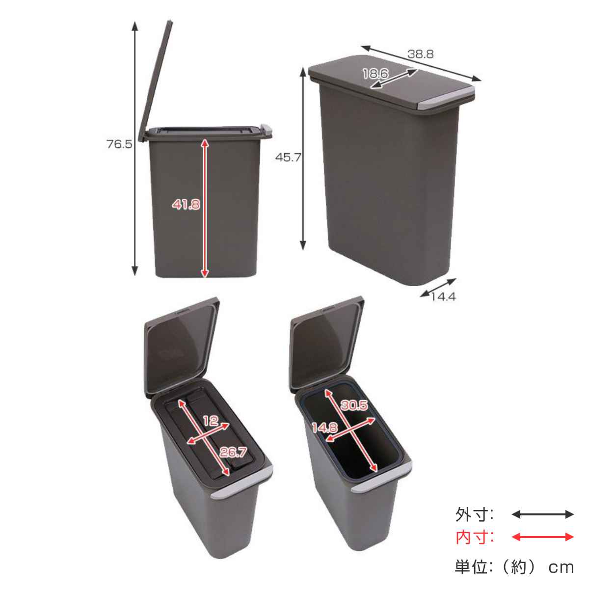 | サイズ | 約 幅18.6×奥行38.8×高さ45.7(cm) |