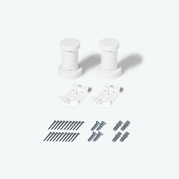 | 内容量 | 本体:2個組 付属品:ジョイントベース(2個)、専用ピン(8本+予備2本)×2、タッピングネジ3×2cm(2本)×2、アンカープラグ(2個) 取り付け方などが記載された箱のパッケージ有り |