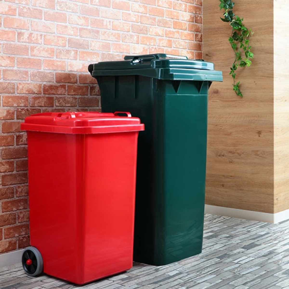 缶やペットボトルなどの資源ゴミを屋外で一時保管して頂くのに最適です。蓋付きのゴミ箱は、カラスのイタズラを未然に防ぐ事もできます。