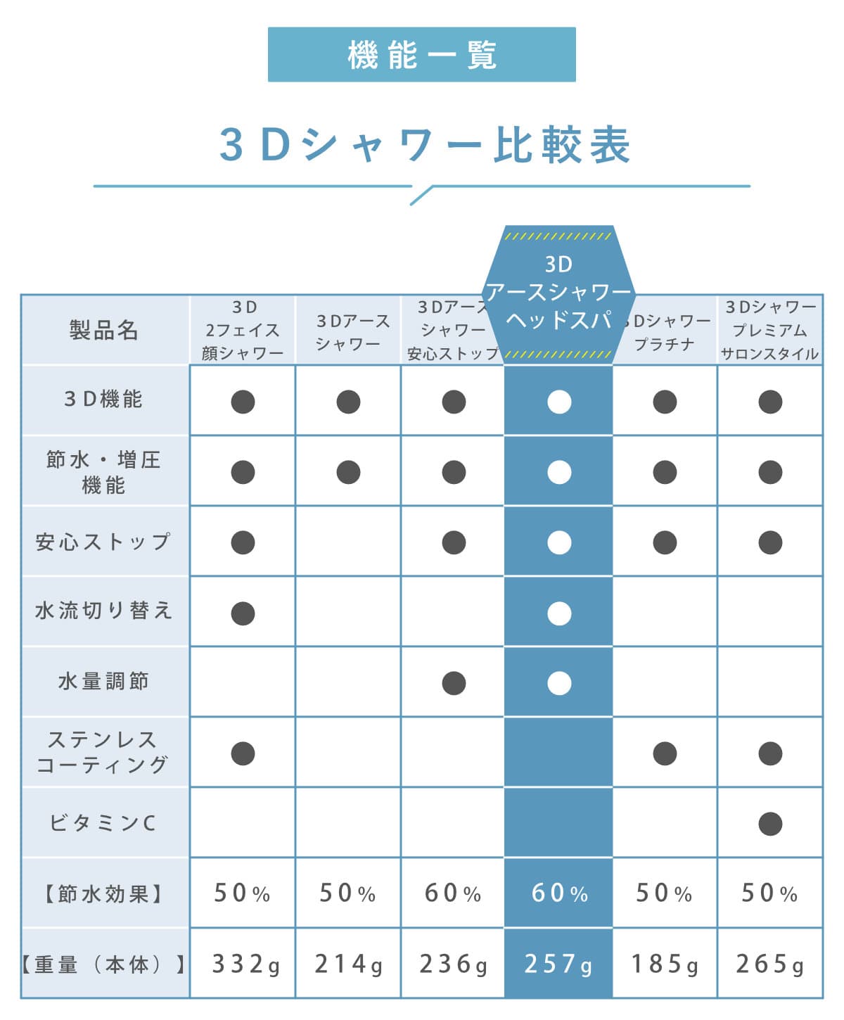 ![]() 3Dアースシャワー安心ストップ | ![]() 3Dシャワープラチナ | ![]() 3Dシャワーサロンスタイルプレミアム |
