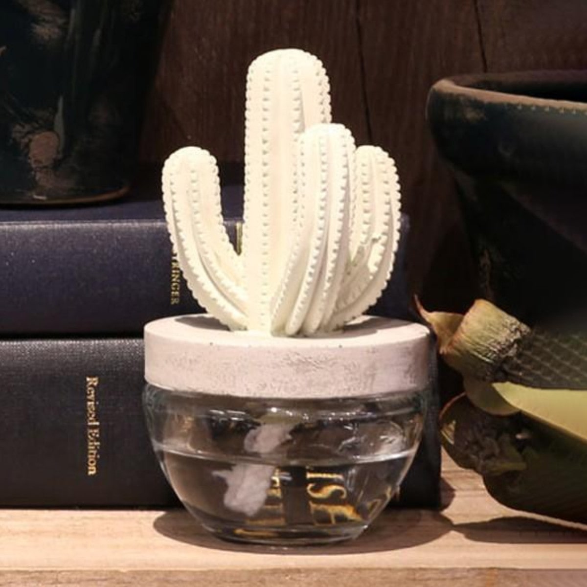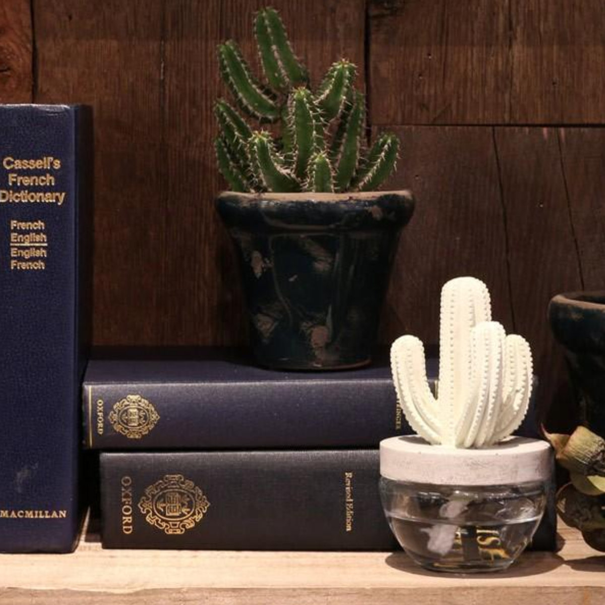 ガラスの中のオイルを吸い上げ、石膏でできた多肉植物から香りを拡散します。