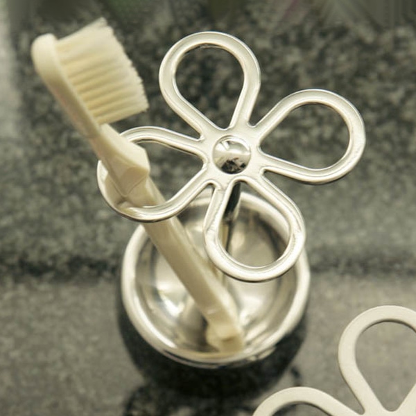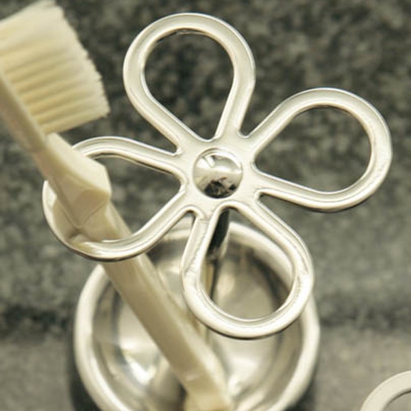 ●お花をモチーフにしたユニークな鏡面仕上げの歯ブラシホルダーです。