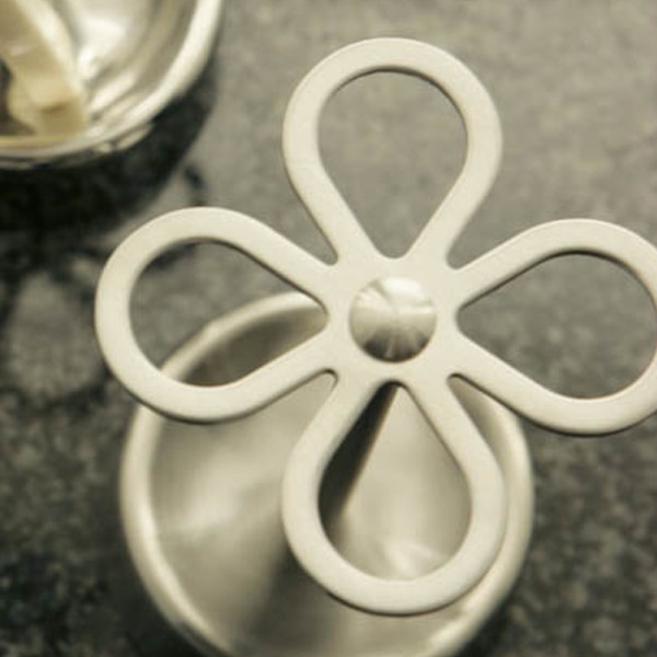 お花をモチーフにしたユニークな歯ブラシホルダー(ステン仕上げ)です。清潔感のあるステンレス製で歯ブラシは4本までスタンドが可能です。また、それぞれが密着しない構造なのでとても衛生的です。シンプルなデザインで洗面台をさりげなくお洒落な雰囲気に演出してくれます。ファミリーでもカップルでも、もちろん一人暮らしでも重宝します。気軽な引っ越し祝いやプレゼントにもおすすめです。