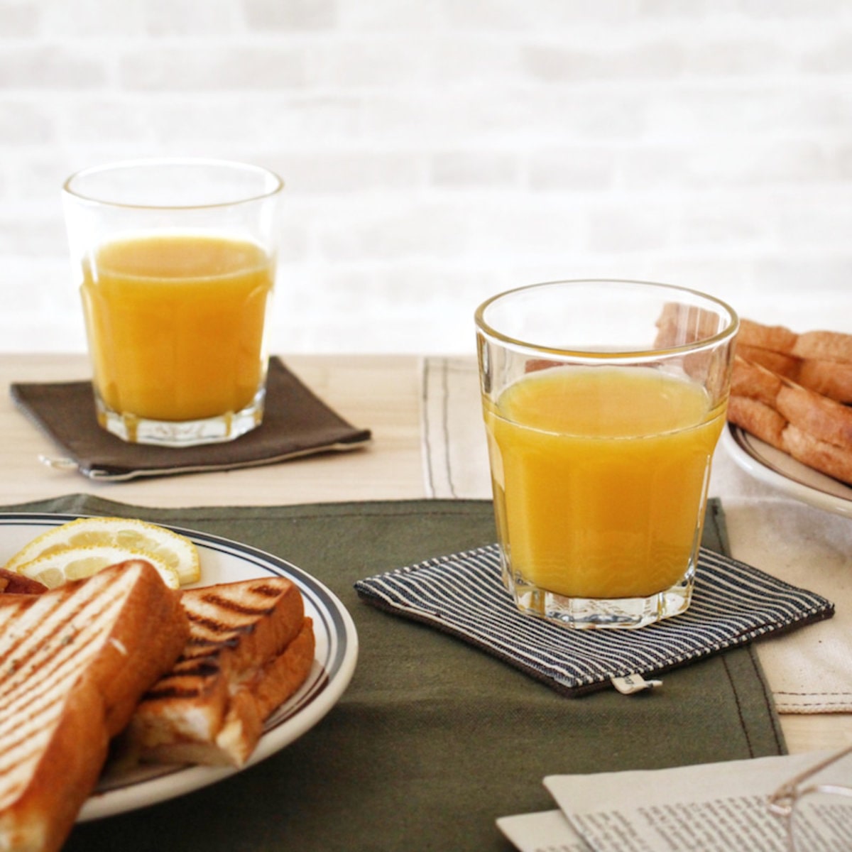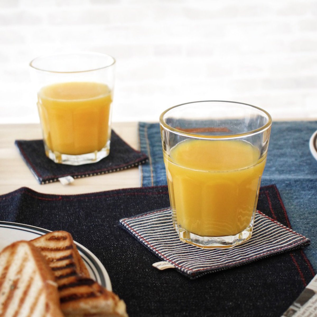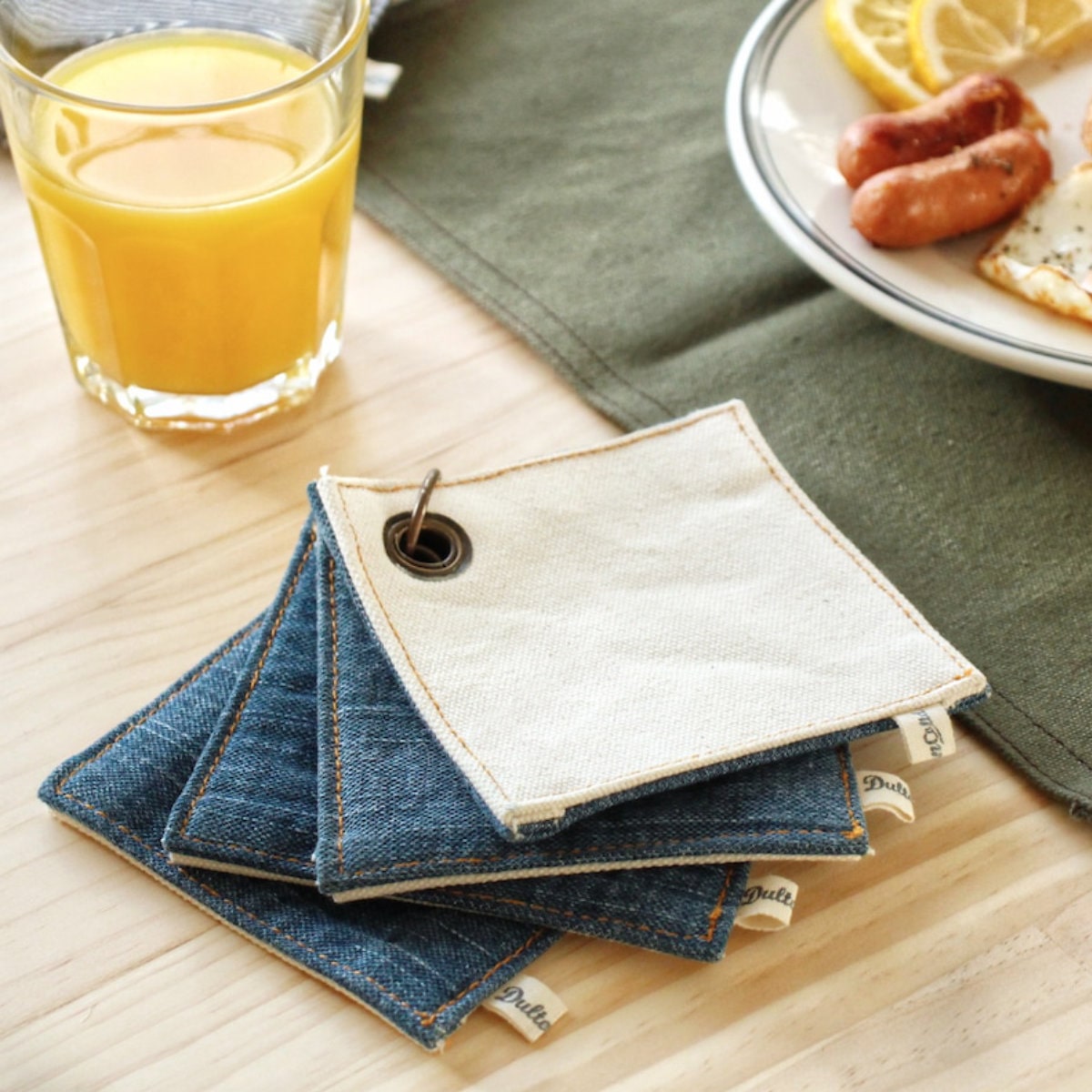 布製のコースターは気軽に洗えて衛生的です。またリバーシブルなので生地が2重になっている分、厚みがありしっかりしています。