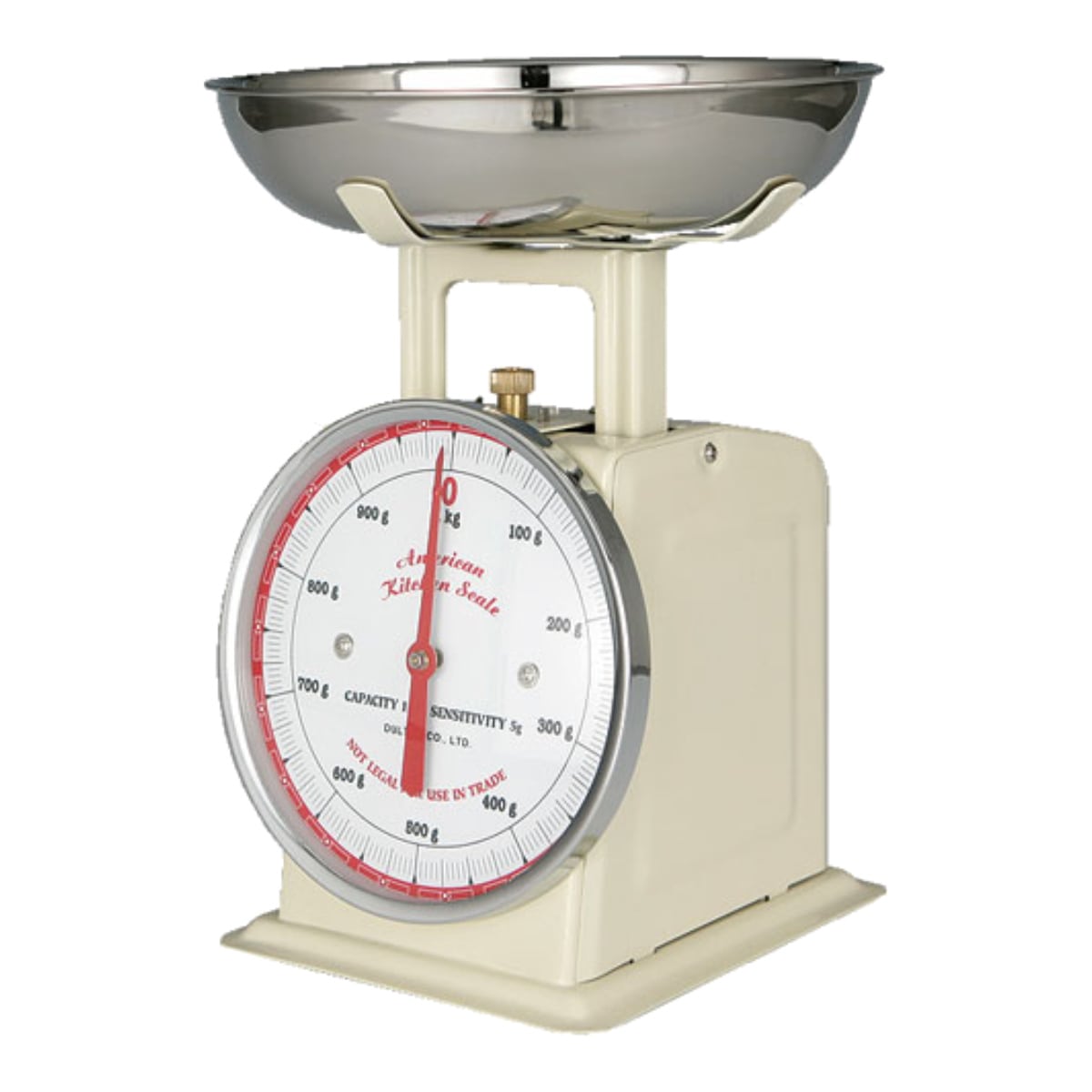 形も機能もスタンダードなキッチンスケールですが、にっこりと笑っているかの様な愛嬌たっぷりの文字盤は、古き良き時代の海外の趣も感じられ、他にはないレトロ感を感じられます。
