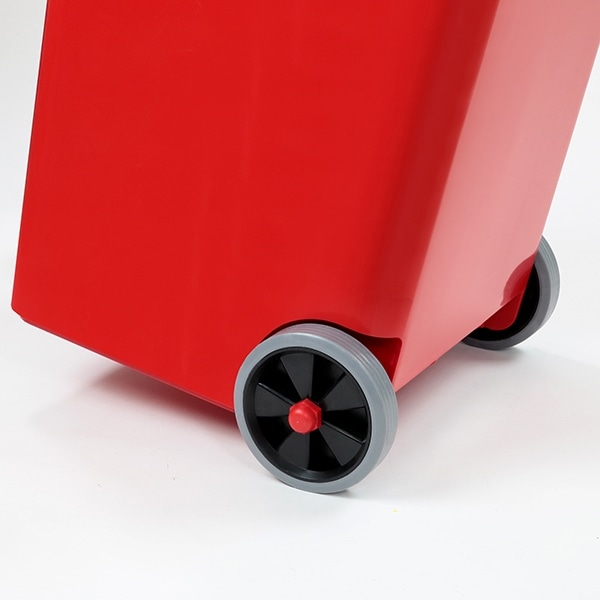 ゴミが溜まって重くなってしまっても簡単に移動ができる、便利なキャスター付きです。収集場所まで楽に移動させる事ができます。また、フタは本体に付いているのでゴミ袋の取り出しも楽々です。