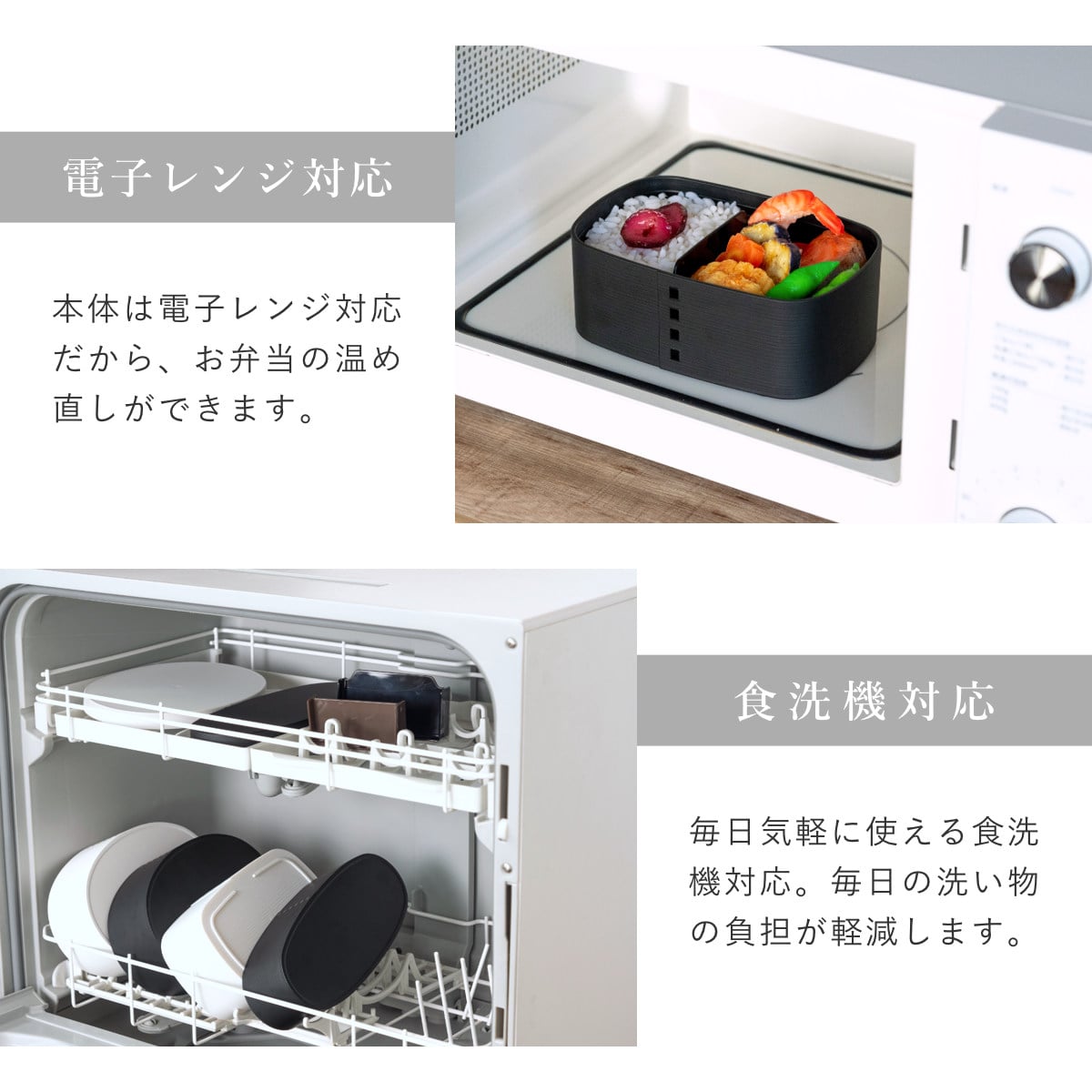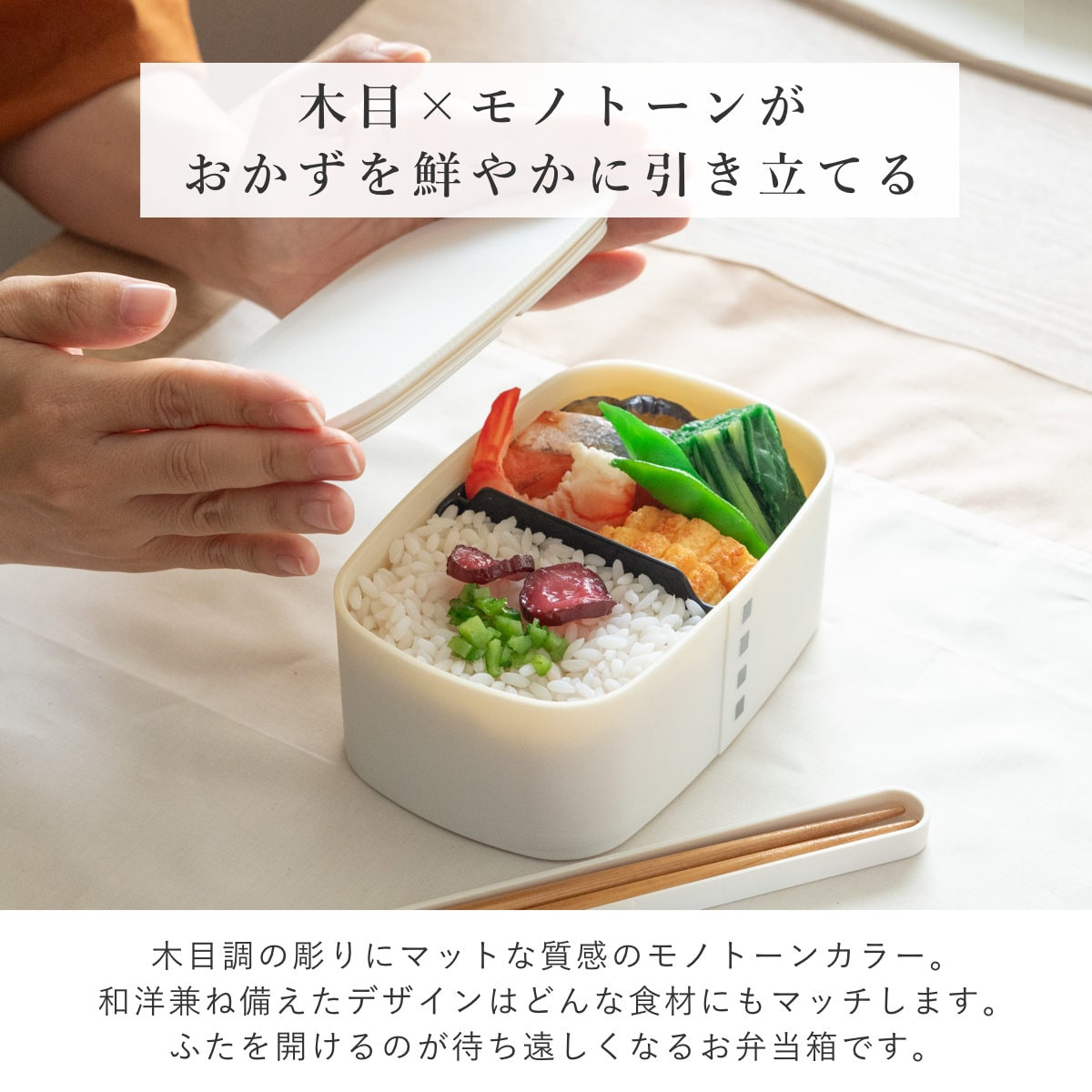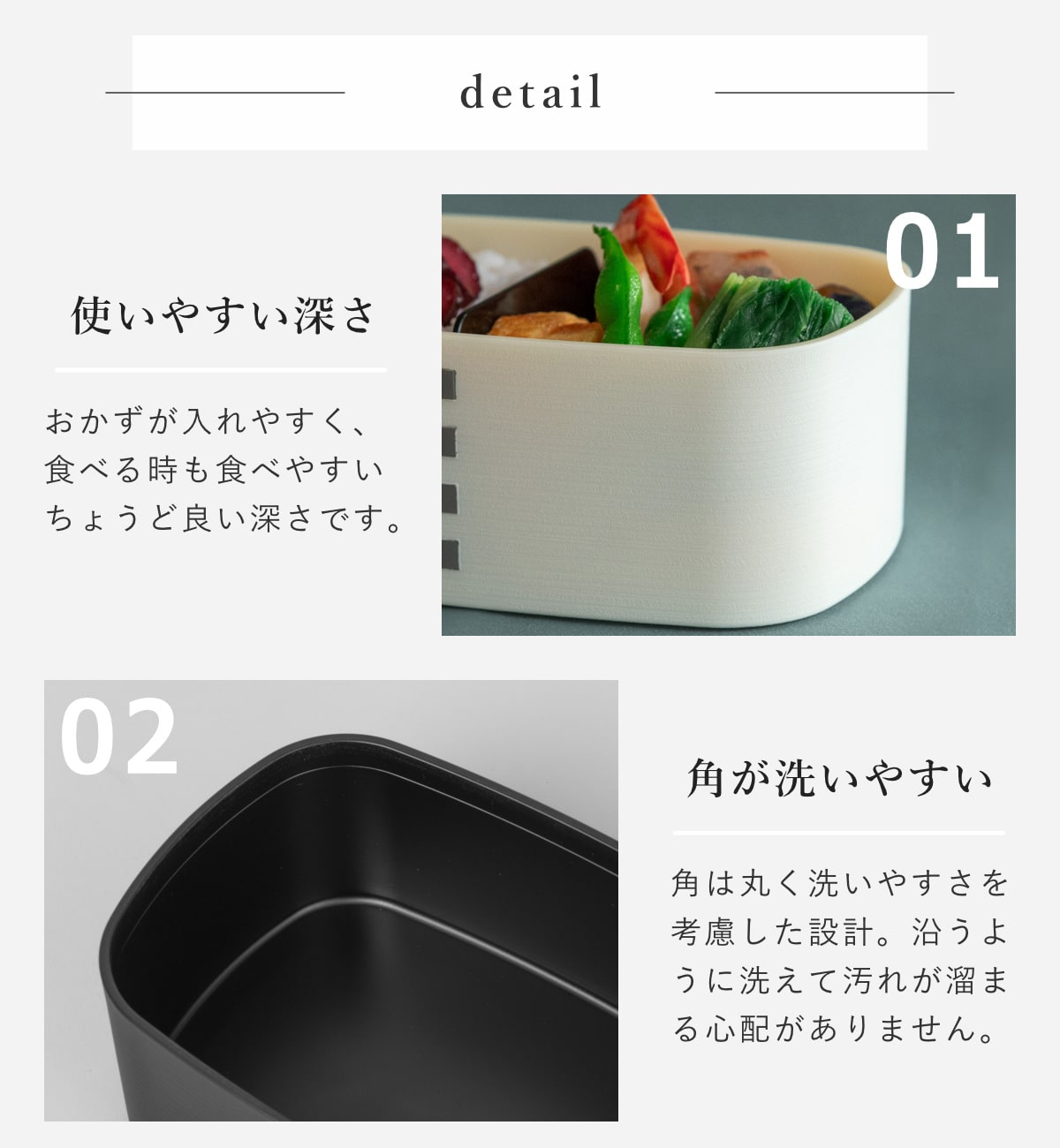 和洋兼ね備えたデザインはどんな食材にもマッチ。ふたを開けるのが待ち遠しくなるお弁当箱です。