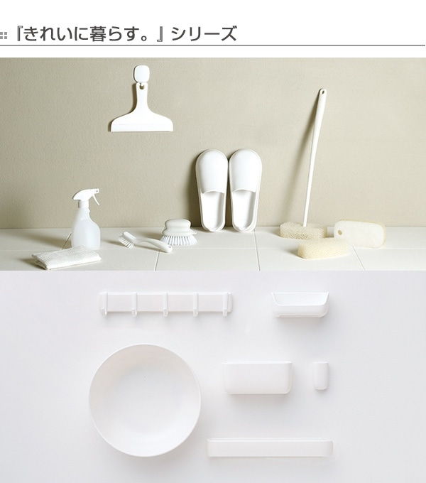 使いやすさ・洗いやすさなど機能面にこだわりながら、置いていても邪魔にならないかたち・色を目指した『きれいに暮らす。』シリーズには、バス用品をはじめ、洗面用品も取り揃えています。統一感のあるバスルームなら、日々の面倒な家事も楽しい時間に変わります。