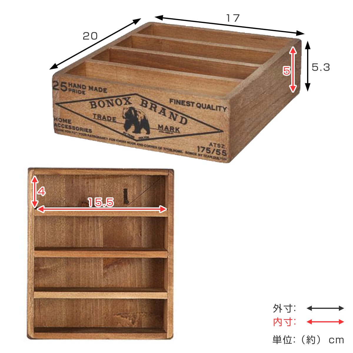 | サイズ | 外寸:約 幅17×奥行20×高さ5.3(cm) 内寸:約 幅15.5×奥行4×高さ5(cm) |