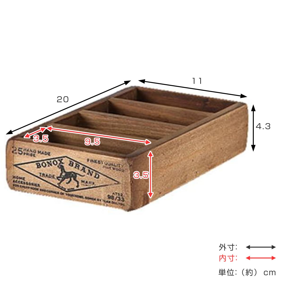 | サイズ | 外寸:約 幅11×奥行20×高さ4.3(cm) 内寸:約 幅9.5×奥行3.5×高さ3.5(cm) |