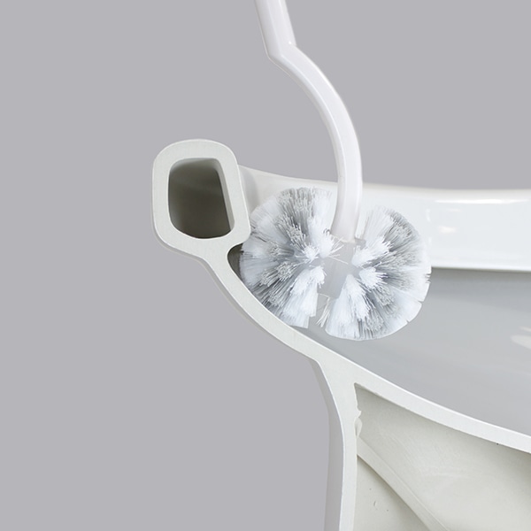 便器のフチ裏に届くよう柄はカーブを描いています。便器を避けるようにして裏側までしっかりと擦り洗いできます。
