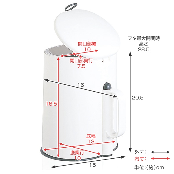 | サイズ | 約 幅15.8×奥行16.4×高さ20.5(cm) 内ケースの内寸 約幅 開口部:10、底:13(cm)×奥行 開口部:7.5、底:10(cm)×深さ:16.5cm |