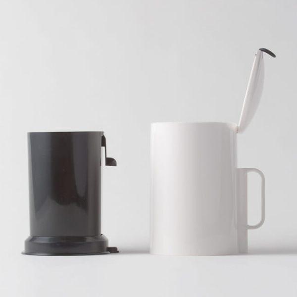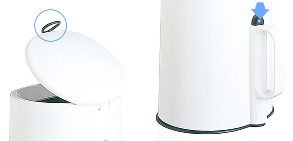 | フタは指一本で開閉できる フタにあるリングに指を通せば簡単に開け閉めができます。フタに直接触れずに済み、パタパタとした音も出にくいです。 | 内ケースはワンタッチで ポットにはハンドルが付いており持ち運びに便利です。ハンドル上部の黒いボタンを下に押し込むことで内ケースが楽に取り出せます。 |