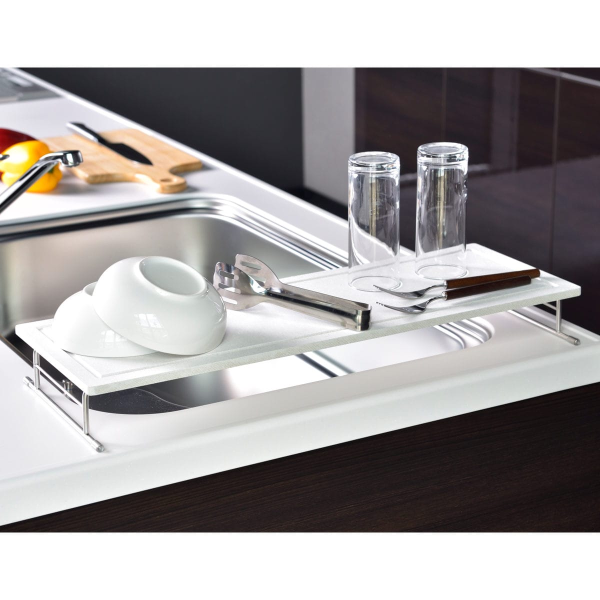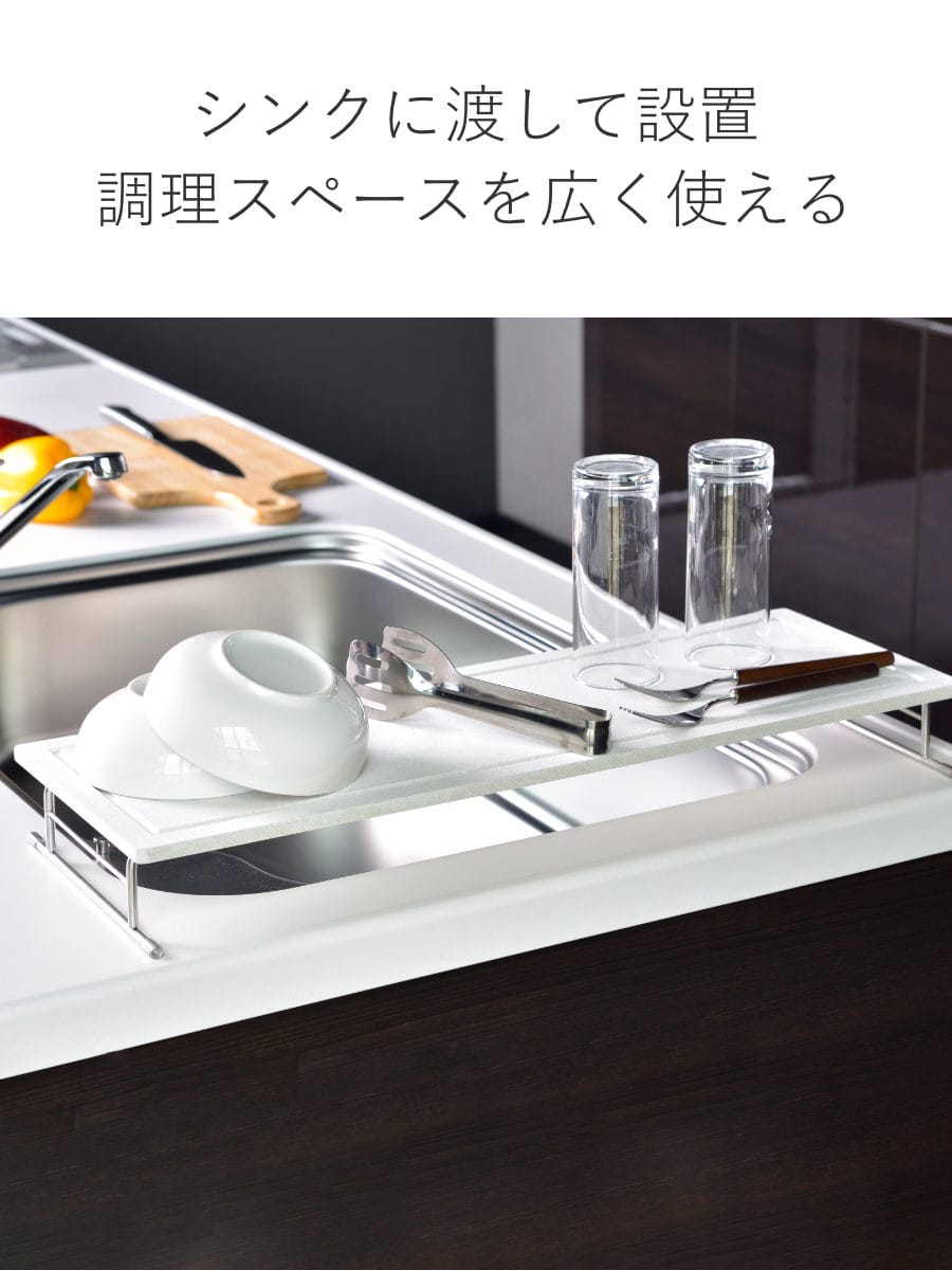 ●シンクに渡して設置するだけで、省スペースな水切りラックとして活躍します。