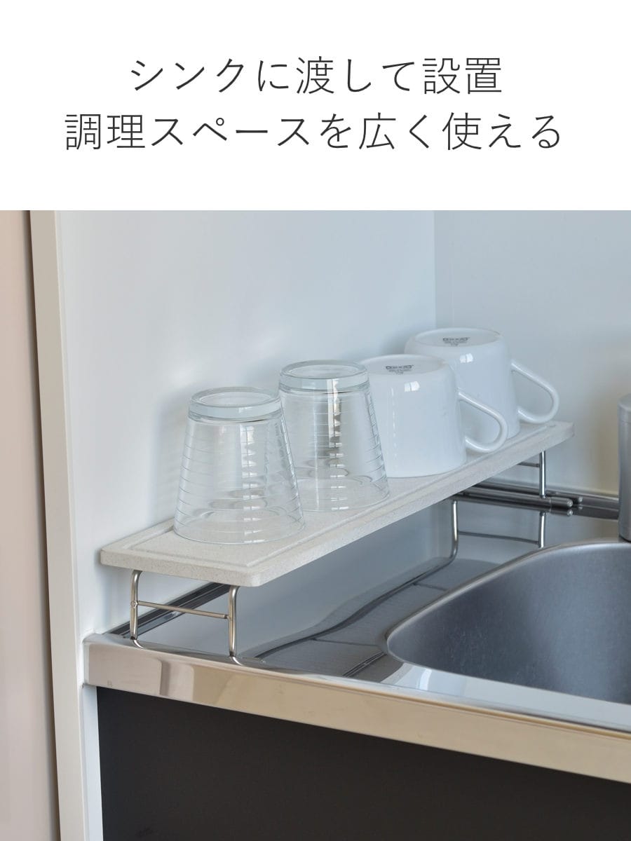 ●シンクに渡して設置するだけで、省スペースな水切りラックとして活躍します。