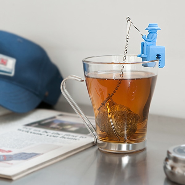 ●釣り人部分をグラスやカップのフチに引っ掛けて使う、ティーインフューザーです。