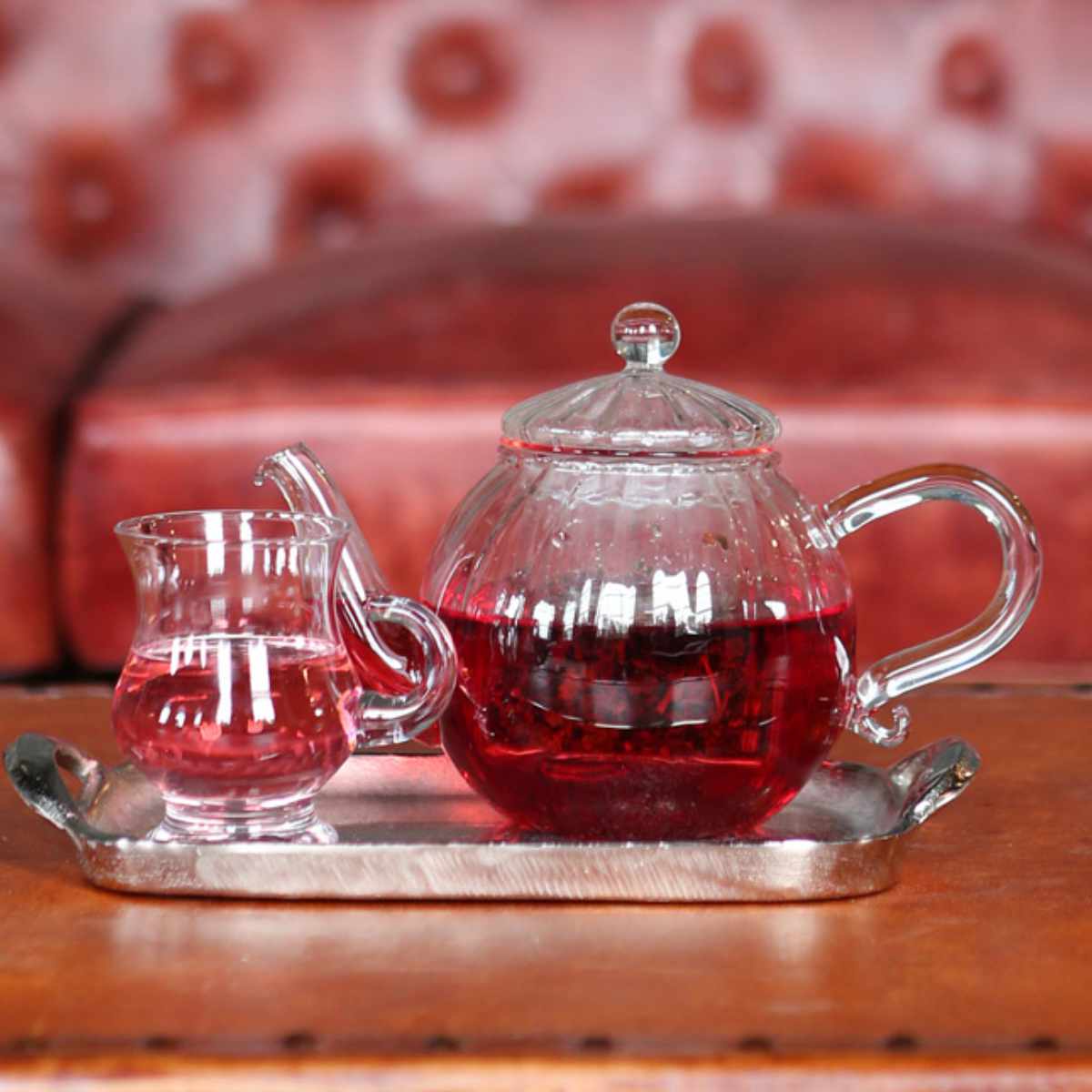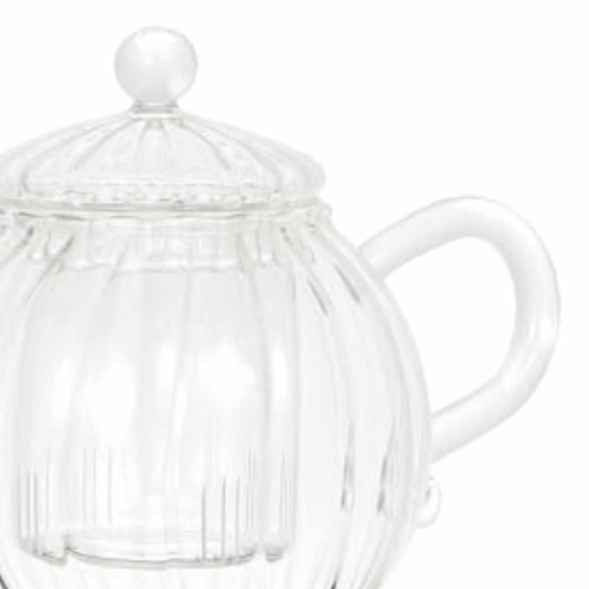 耐熱ガラスでできた底の丸いぽてっとしたフォルムのティーポットです。透明なのでお茶の色を、目でも愉しみながらティータイムが過ごせます。約4~5杯分のお茶を淹れられます。来客時のおもてなしにもぴったりです。