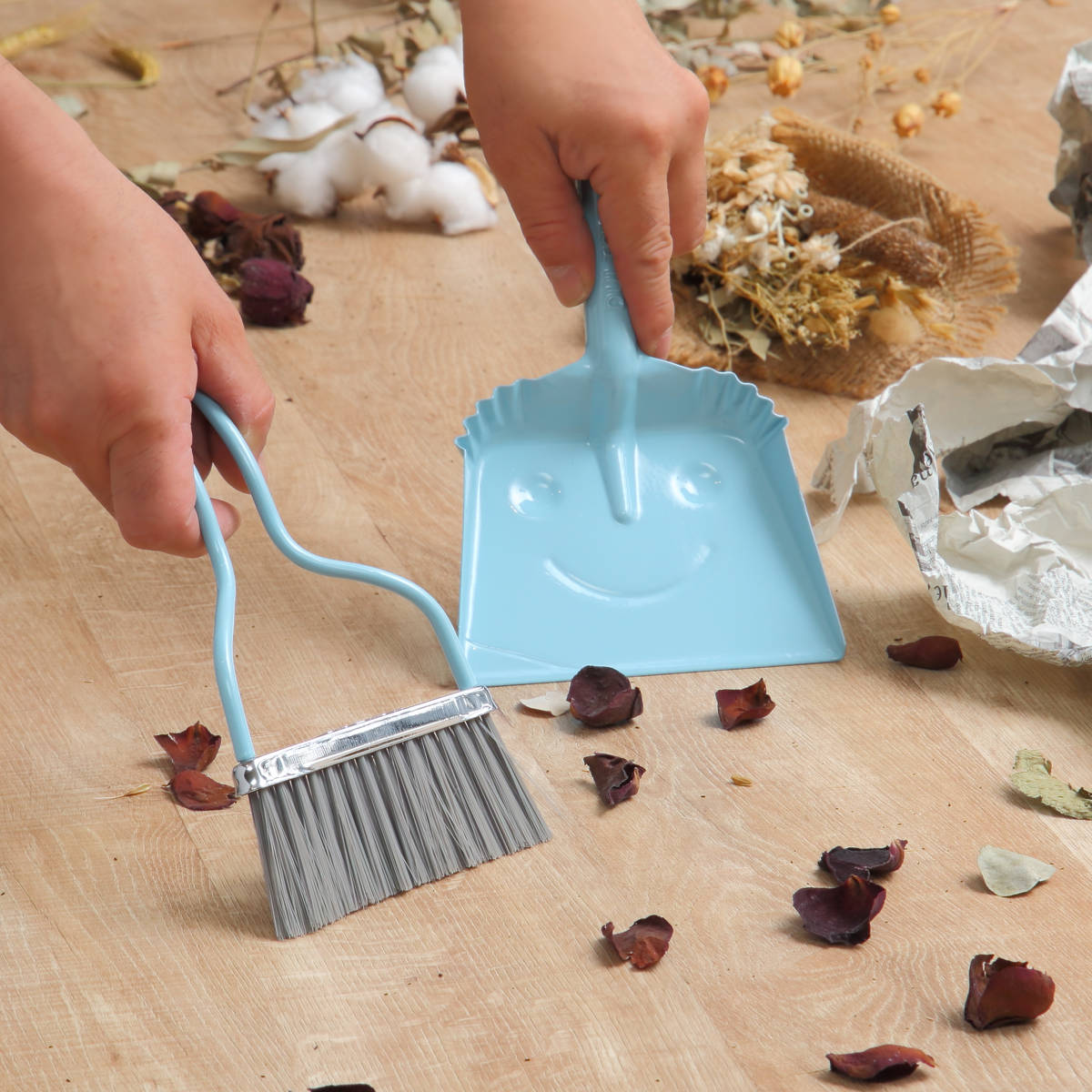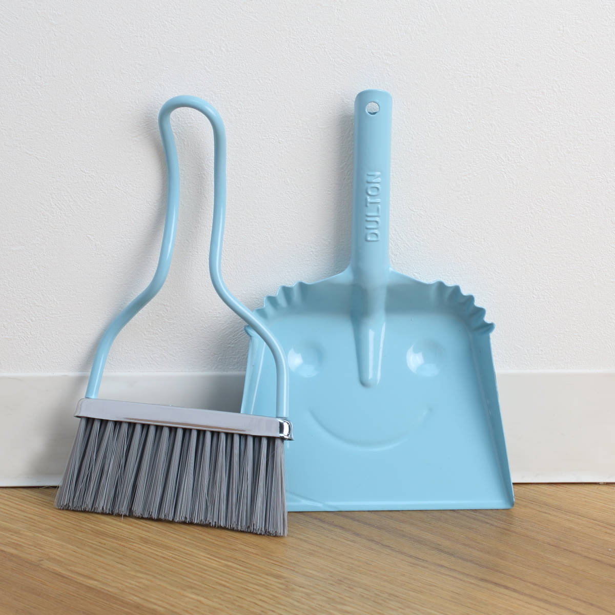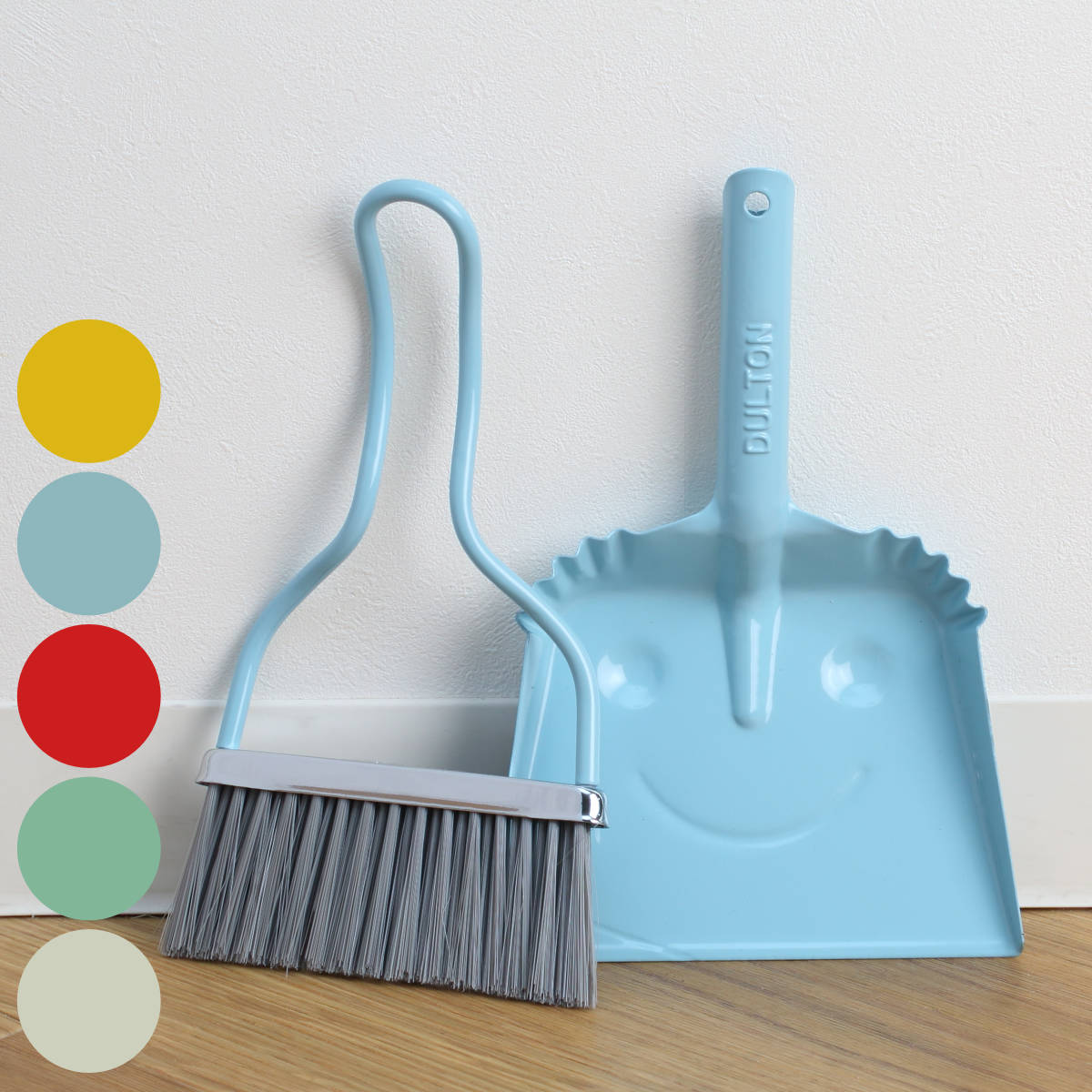 いつでもゴミを笑顔で受け入れてくれる、遊び心のあるほうきとちりとりのセットです。インテリアのアクセントにもなるポップなカラーとかわいいデザインが魅力、使わない時も目の付くところに飾っておきたくなるお掃除アイテムです。