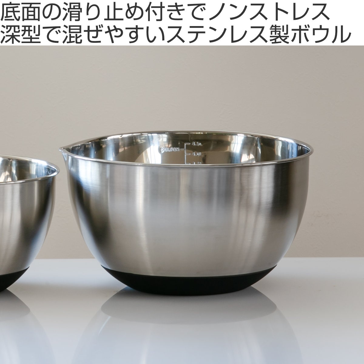 底面に施されたシリコン素材が滑り止めになって、ノンストレスで作業できます。泡立ての時などに、滑らないように濡れた布巾などを敷く必要もありません。