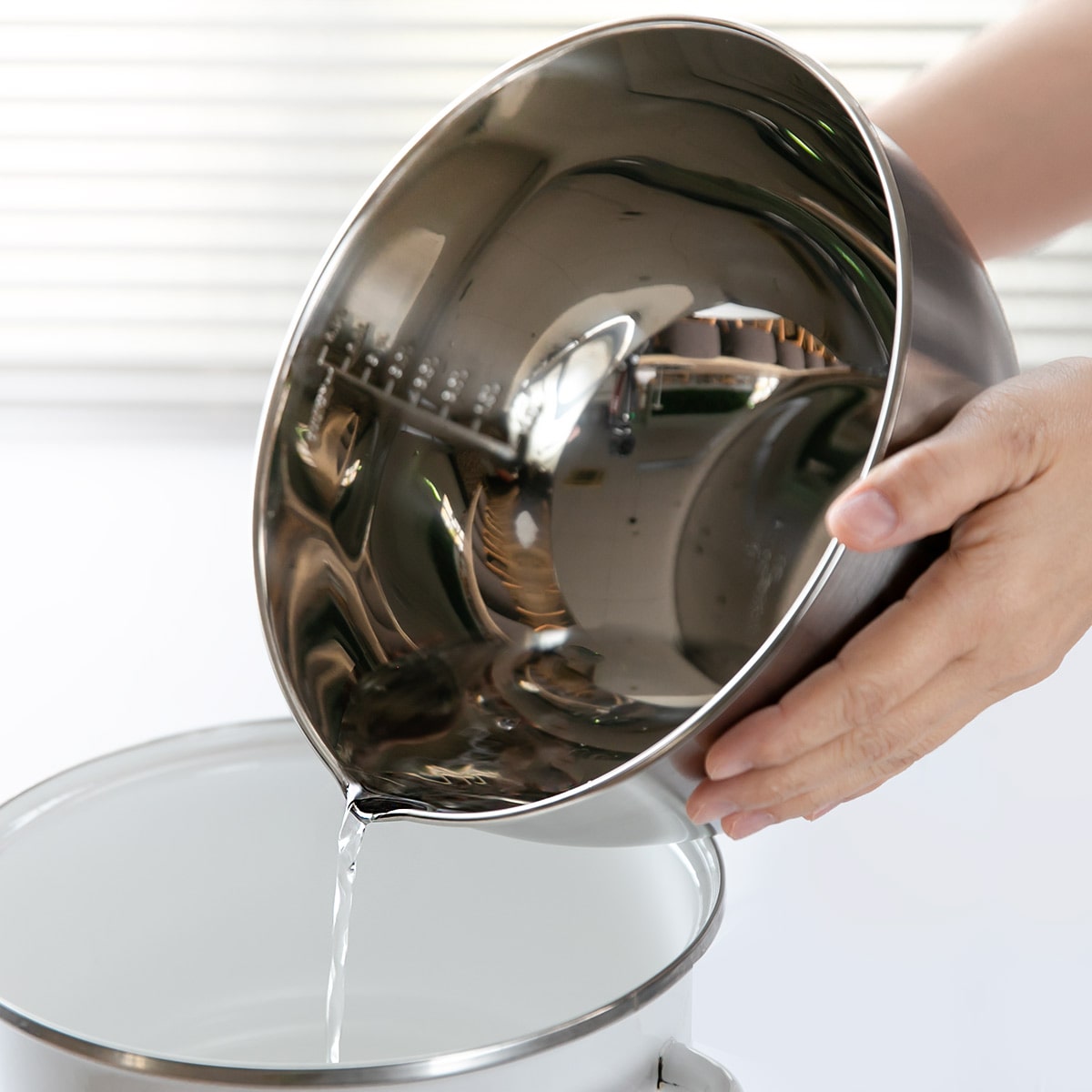 内側には容量表示の目盛りが入っているので、計量カップで計る手間も省けます。