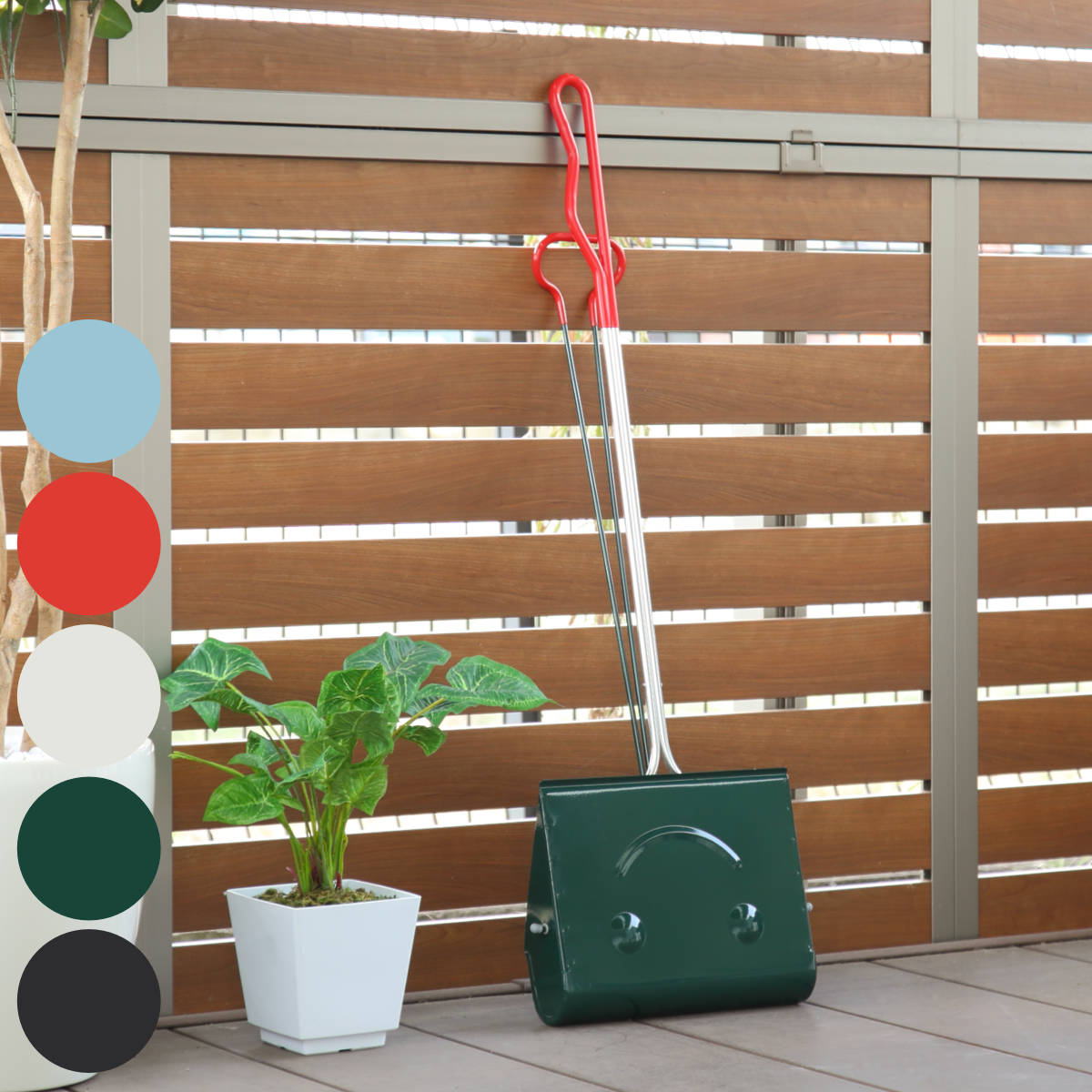 ロングハンドルタイプは、玄関先やお庭、ガレージ等をささっと掃きたい時にオススメの大きめサイズ。柄付きのちりとりで腰をかがめることなく楽な姿勢で掃除ができます。カラーも豊富なので、あなたのお好みの相棒を見つけて下さい。