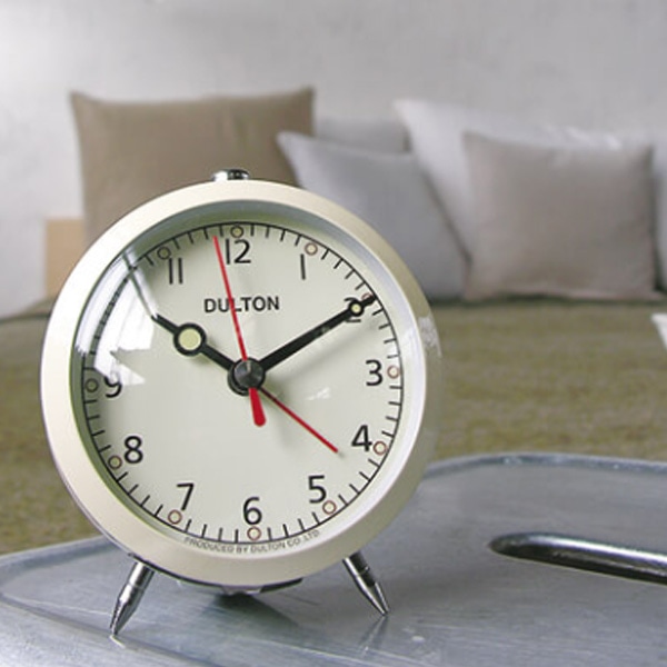 今にも歩き出しそうなかわいい脚付きのアラームクロックです。シンプルなのでどこに置いても邪魔になりません。