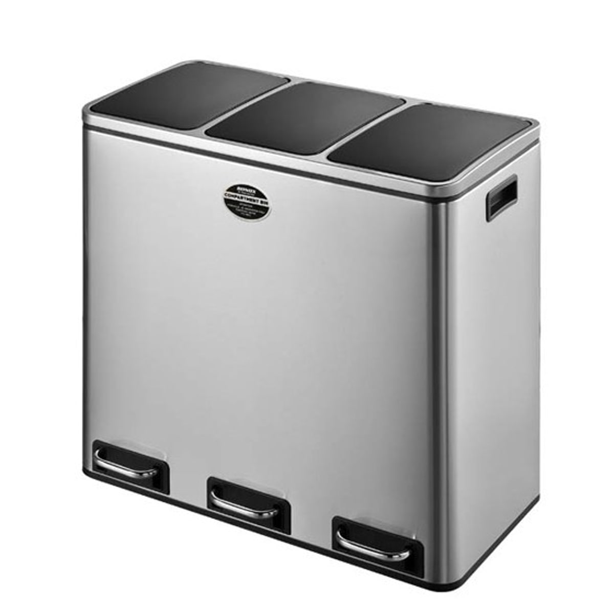 3つ横並びでそれぞれ18Lの容量があります。ビン、缶、ペットボトルなど細かく分別したい時に便利です。それぞれにインナーボックスが付属しているので、お手入れも簡単です。