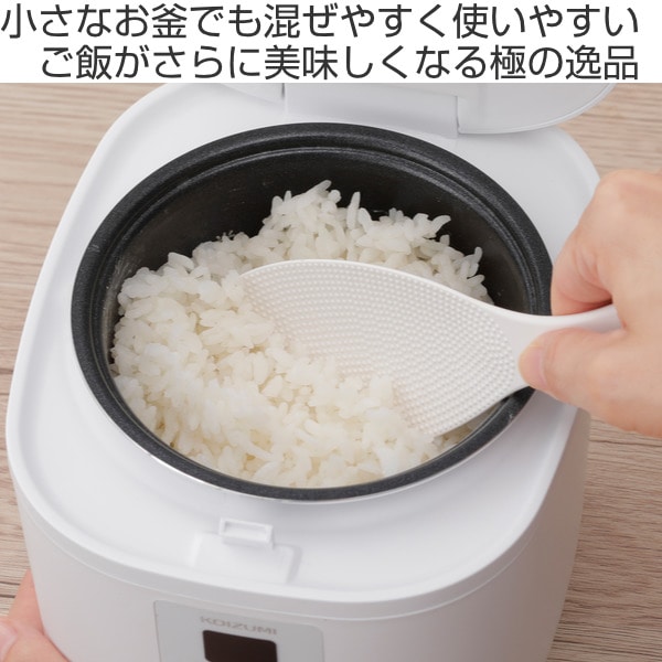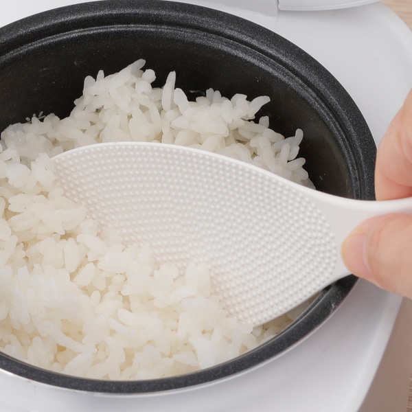小さいお釜でも混ぜやすい大きさ・形です。長いヘラ面でお釜の底まで混ぜることが出来ます。グリップは握りやすく、スリム幅でご飯を綺麗によそえます。