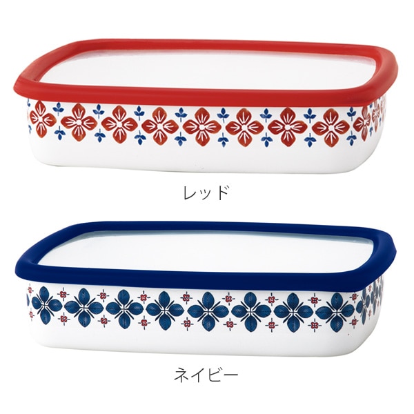 ホーロー製品は、鉄のボディをガラスの膜で覆っています。酸や塩分に強く、ニオイ移りしにくいので食材の保存に適しています。また熱に強くオーブンでの使用も可能なので幅広い用途でお使いいただけます。※電子レンジは使用不可。※画像はサイズ違い商品も含めたイメージです。