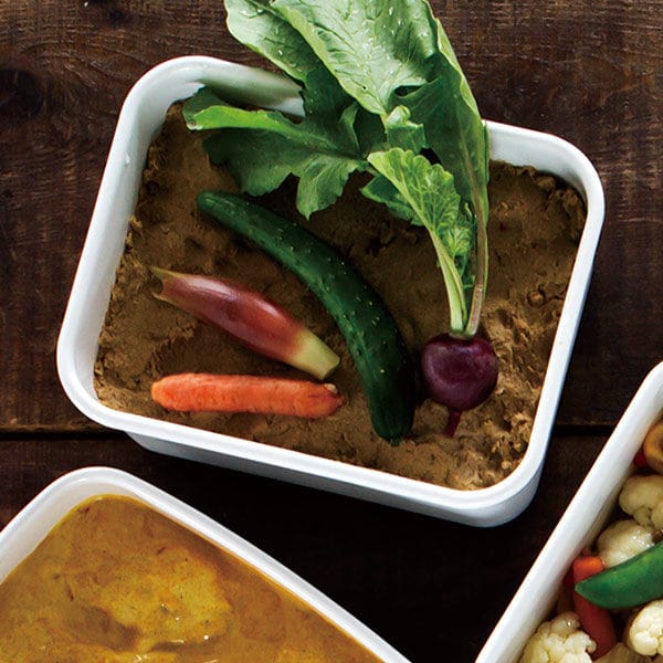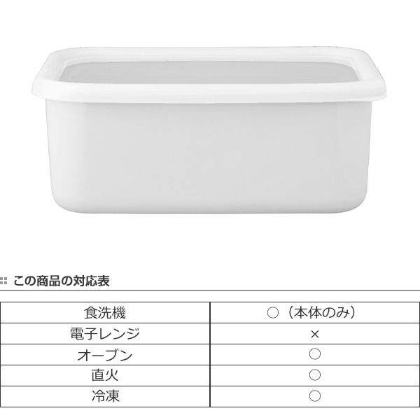 バット代わりに使って下ごしらえ、そのまま直火やオーブンにかけて調理と保存以外にも活躍します。無駄のないシンプルデザインは、冷蔵庫から出してそのまま食器として食卓へ出してもOK!