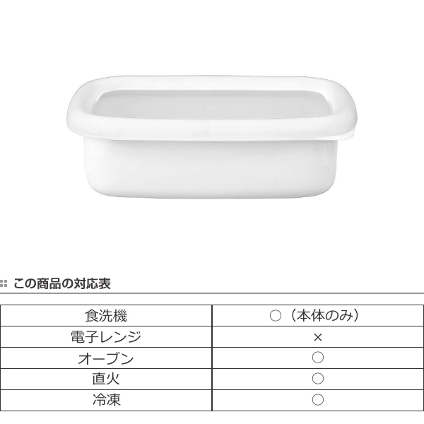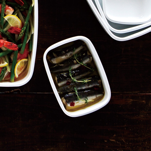 バット代わりに使って下ごしらえ、そのまま直火やオーブンにかけて調理と保存以外にも活躍します。無駄のないシンプルデザインは、冷蔵庫から出してそのまま食器として食卓へ出してもOK!