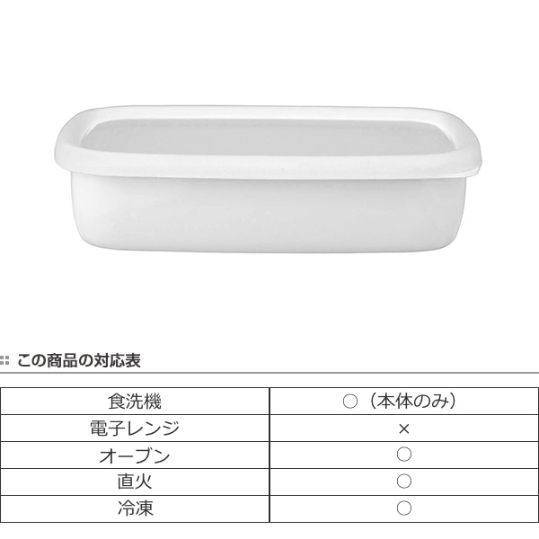 バット代わりに使って下ごしらえ、そのまま直火やオーブンにかけて調理と保存以外にも活躍します。無駄のないシンプルデザインは、冷蔵庫から出してそのまま食器として食卓へ出してもOK!