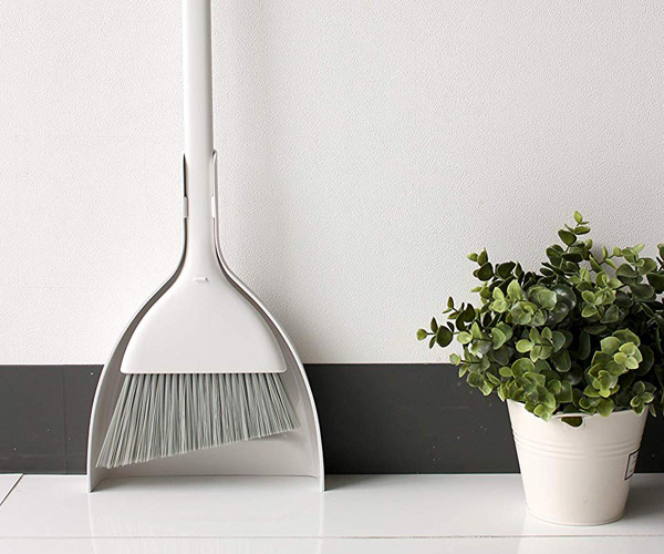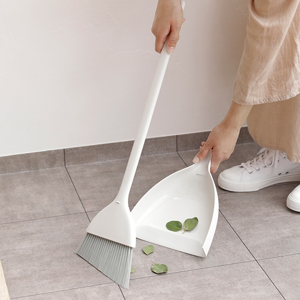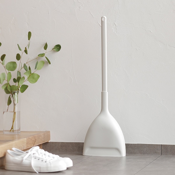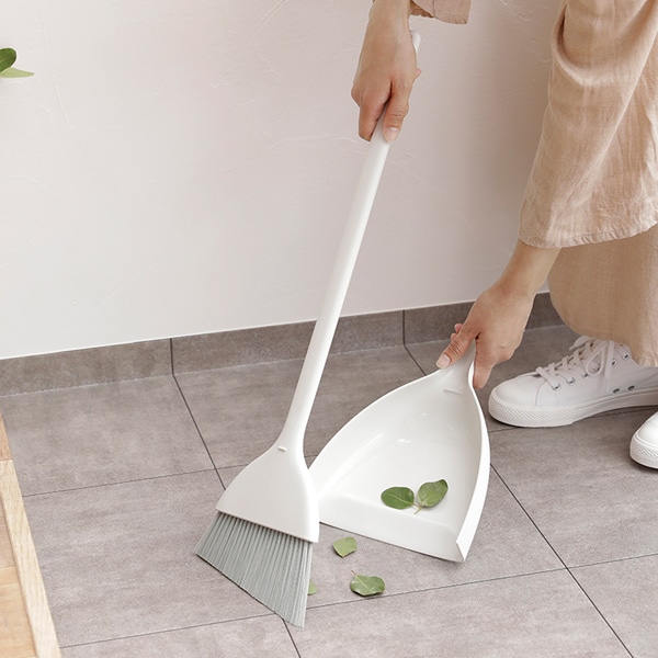 ちりとりと一緒にすることで自立するので、穂先を守りながら収納できます。スリムでシンプルなデザインで玄関の隅に置いても邪魔になりません。