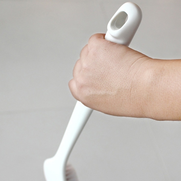 | 抗菌剤入り ブラシ部分は抗菌剤が入っているので衛生的です。 | 滑りにくい 柄の部分は突起があるので、石鹸などがついた手で握っても扱いやすい形状になっています。 |