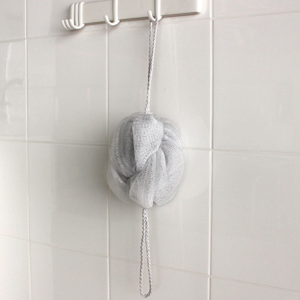 手のひらサイズ片手に収まるサイズで、泡立てもしやすく、すすぎも手早くできます。 | 引っ掛けて収納ひもがついているので、引っ掛けて収納でき、乾燥しやすく衛生的です。どんなバスルームにも馴染むよう落ち着いた色合いです。 |