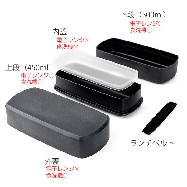 | 内容量 | 総容量:950ml(上段:450ml、下段500ml) |