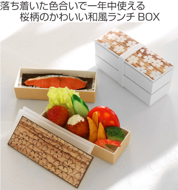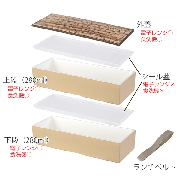 落ち着いた色合いだから一年中使える桜柄です。シール蓋付きだから、汁もれしにくいです。上段と下段に分かれているので汁移りを気にせず大好きなおかずを入れられます。便利なランチベルト付きで、安心の日本製です。