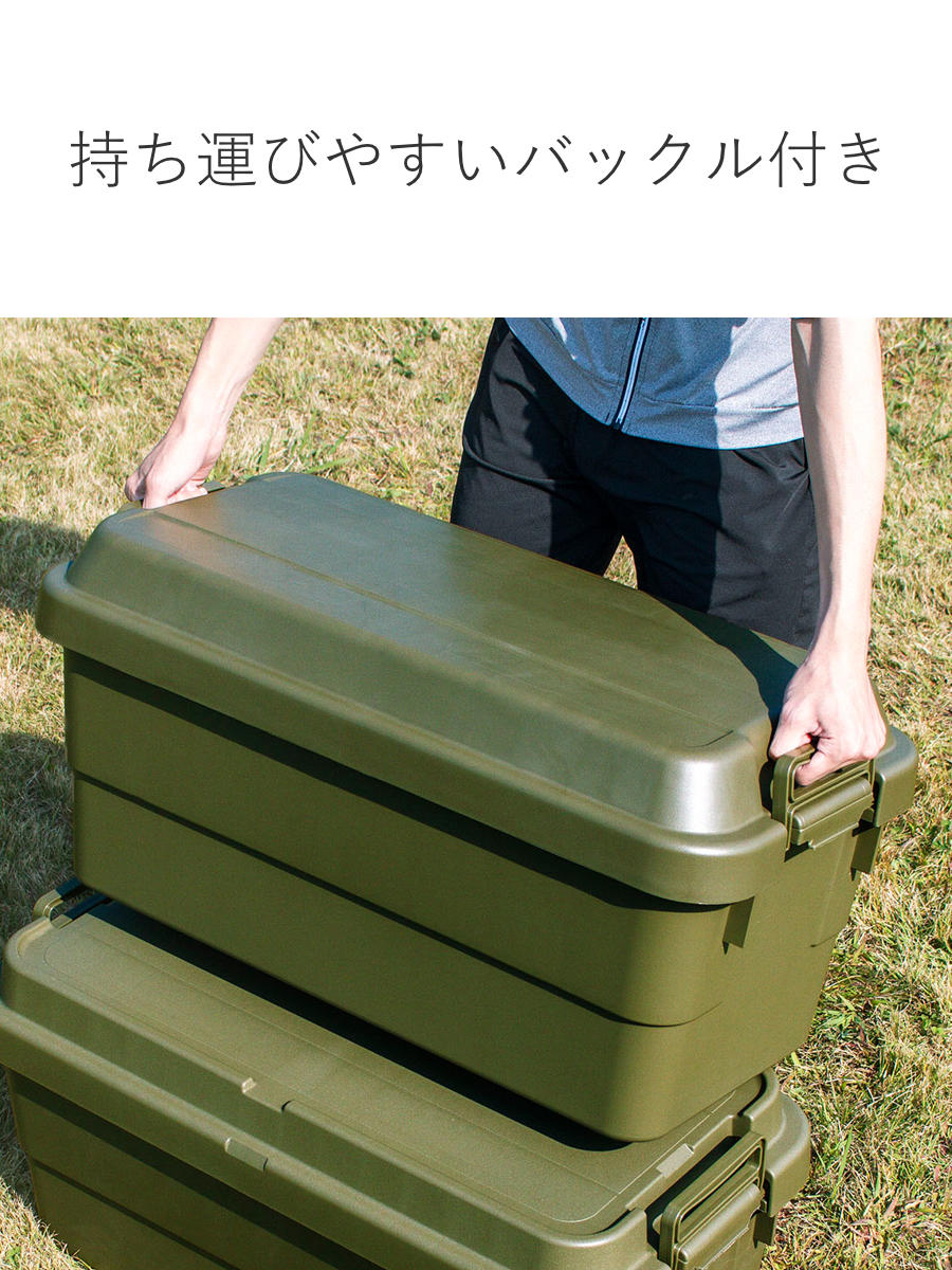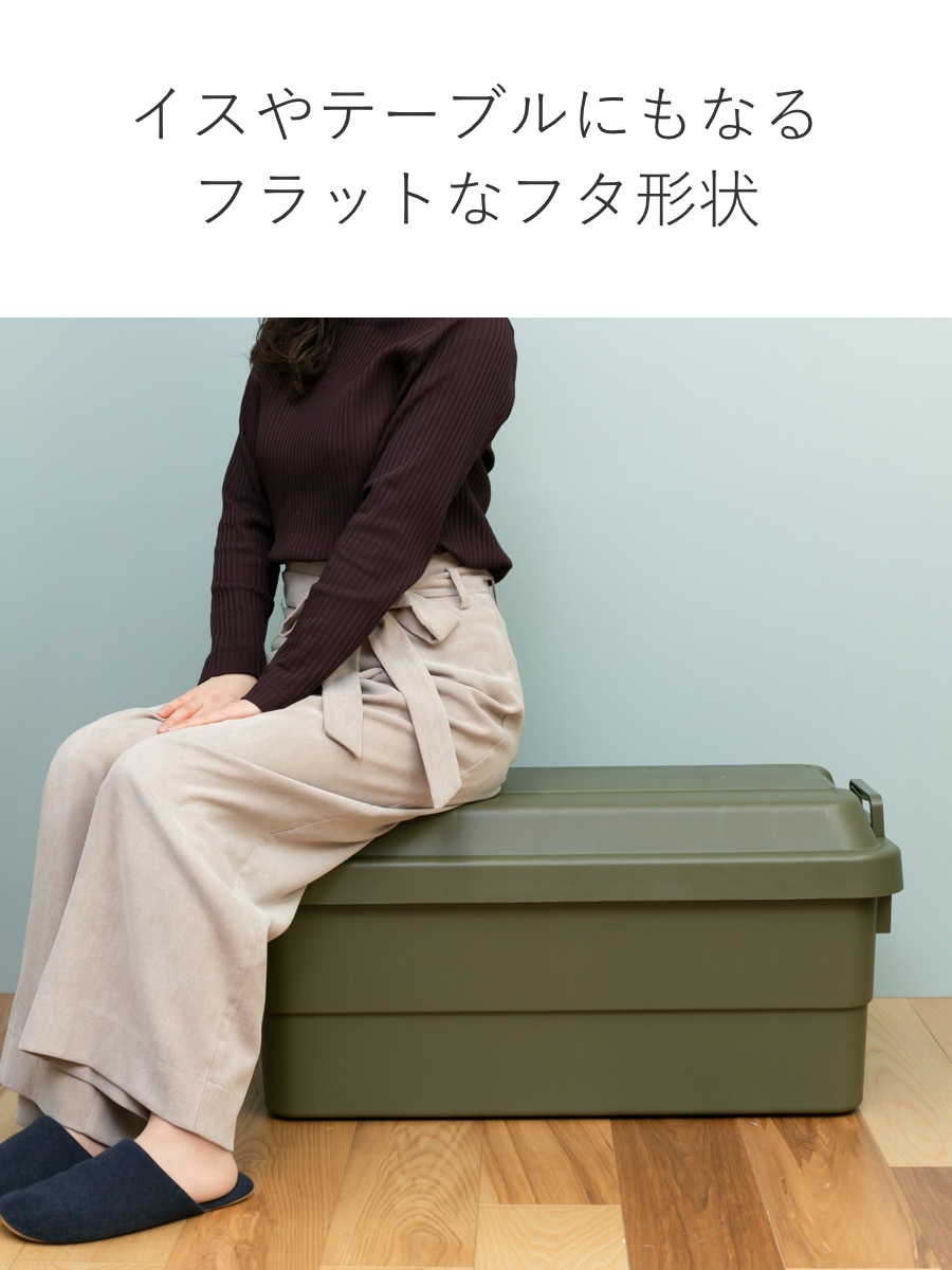 耐荷重100kgの頑丈さが特徴の『トランクカーゴ』は、「座れる」「しまえる」「積み重ねられる」「持ち運べる」の多機能なフタ付き収納ボックスです。無骨でシンプルなデザインで、屋外・屋内問わずに様々なシーンで活躍してくれる万能収納アイテムです。