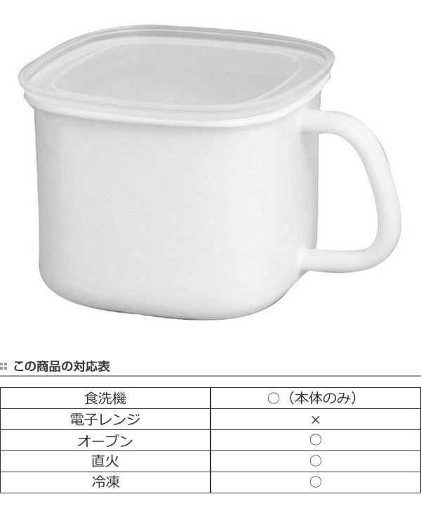 | 材質 | 本体:ほうろう用鋼板 蓋:ポリプロピレン(耐熱温度:120度) フタパッキン:シリコン樹脂 |