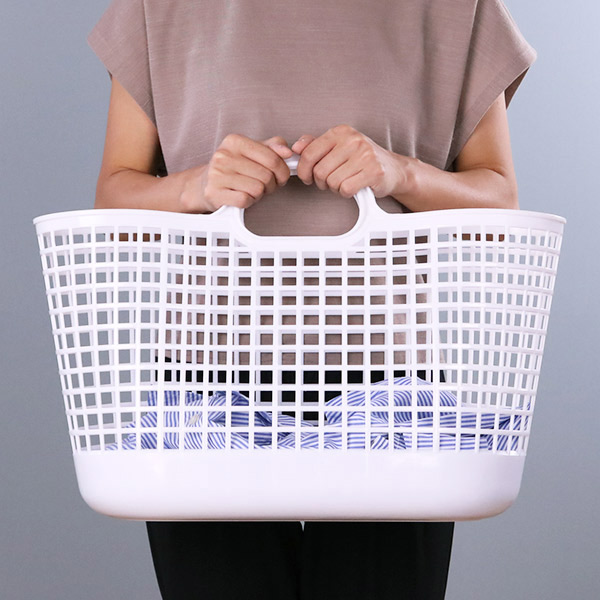藤かごをイメージした、使い勝手の良いタウンバスケットです。プラスチック素材なので扱いやすく、格子状なので通気性も抜群です。洗濯物用としてはもちろん、キッチンや子どものおもちゃ収納、アウトドアなど、様々なシーンで活躍します。