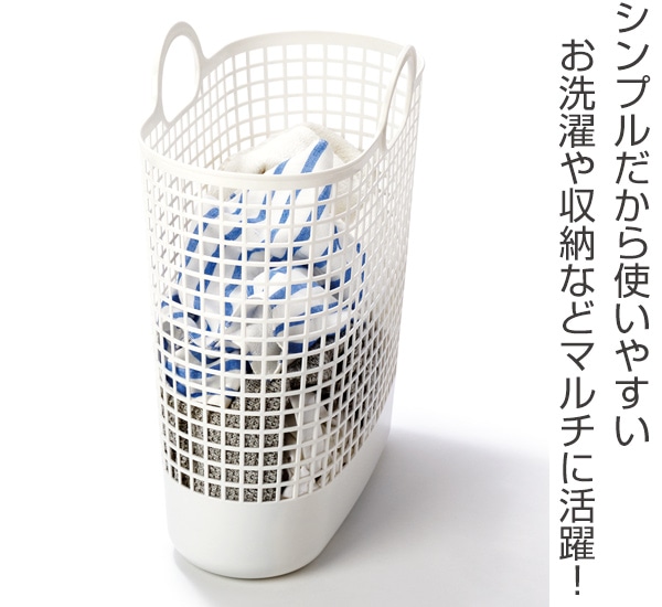 藤かごをイメージした、使い勝手の良いタウンバスケット、ビッグサイズです。プラスチック素材なので扱いやすく、格子状なので通気性も抜群です。洗濯物用としてはもちろん、キッチンや子どものおもちゃ収納、アウトドアなど、様々なシーンで活躍します。
