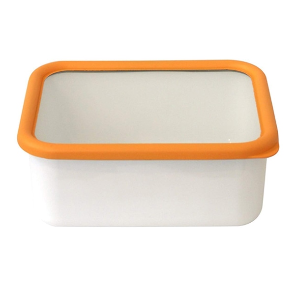 ホーローは酸や塩分に強いため食材の保存に適しています。表面のガラス質は汚れが付きにくく、匂い移りも少ないので、キムチなどの発酵食品のほか、さまざまな食材のストックが可能です。また、フタのフチはエラストマー製のため柔軟性があり開けやすく、丈夫で破損しにくいのが特徴です。フタの中央は透明度があり中身が見やすいポリプロピレン製です。