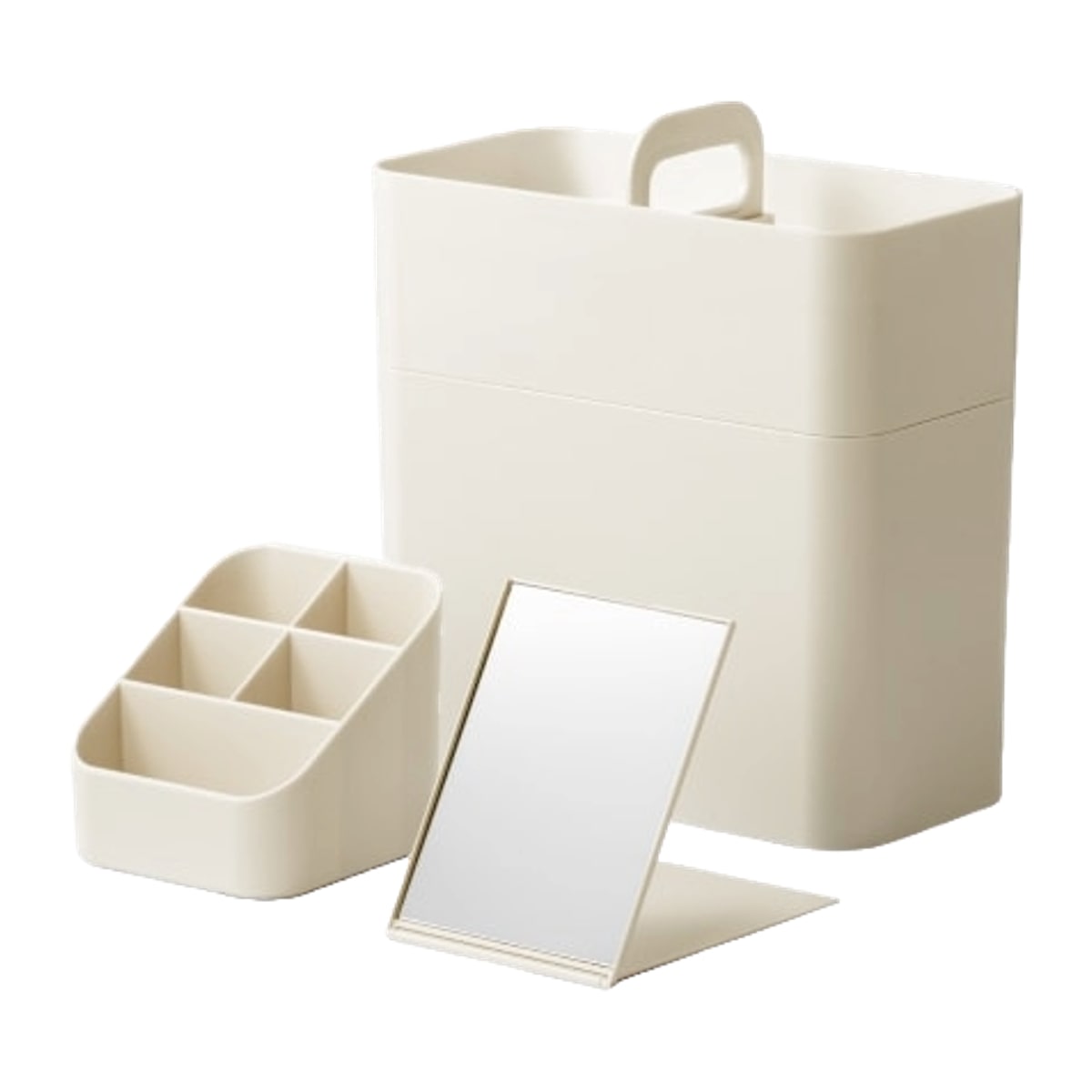 | 材質 | ボックス・ハンドル・トレー・スタンド・ミラー(フレーム):スチロール樹脂 ミラー:高透度ガラス |