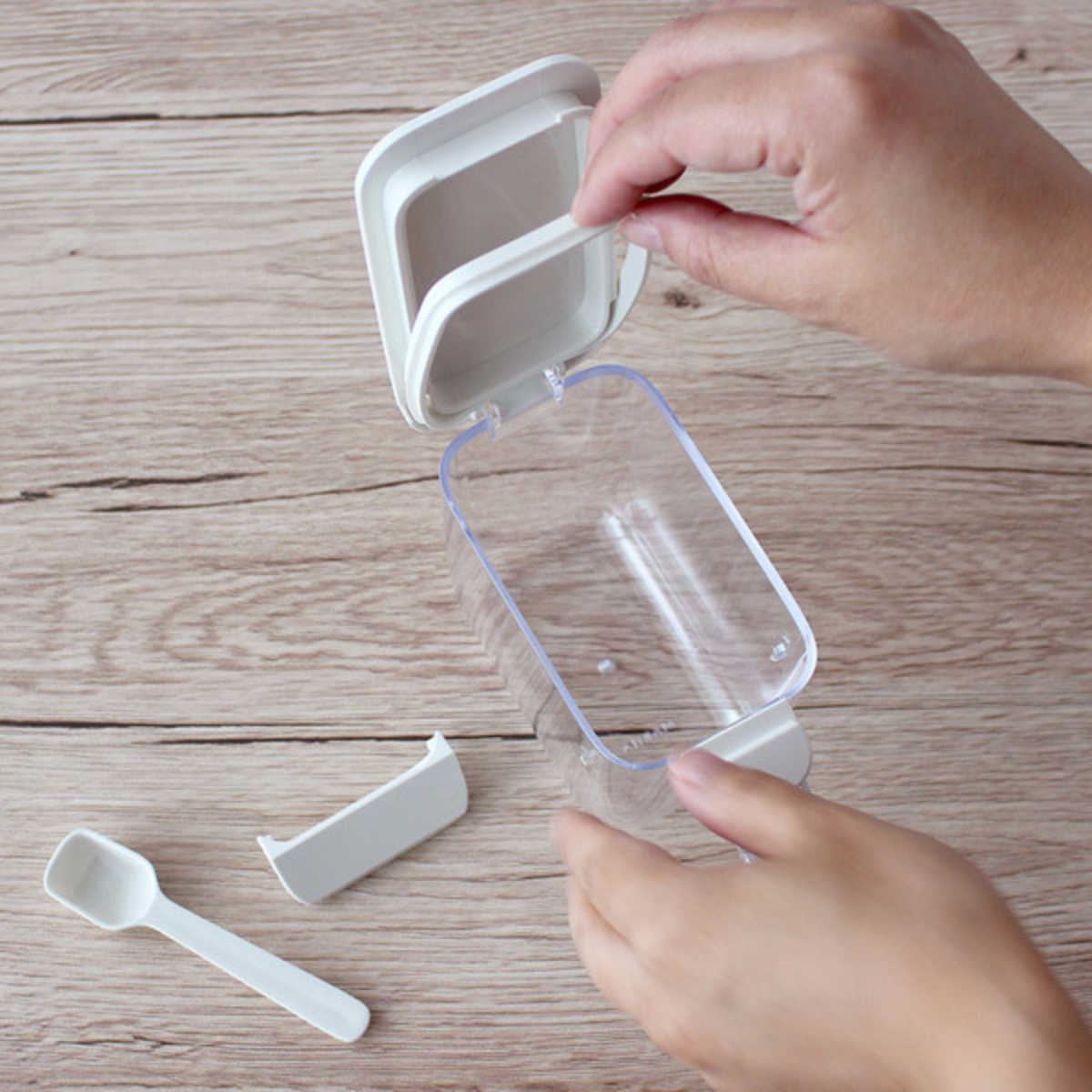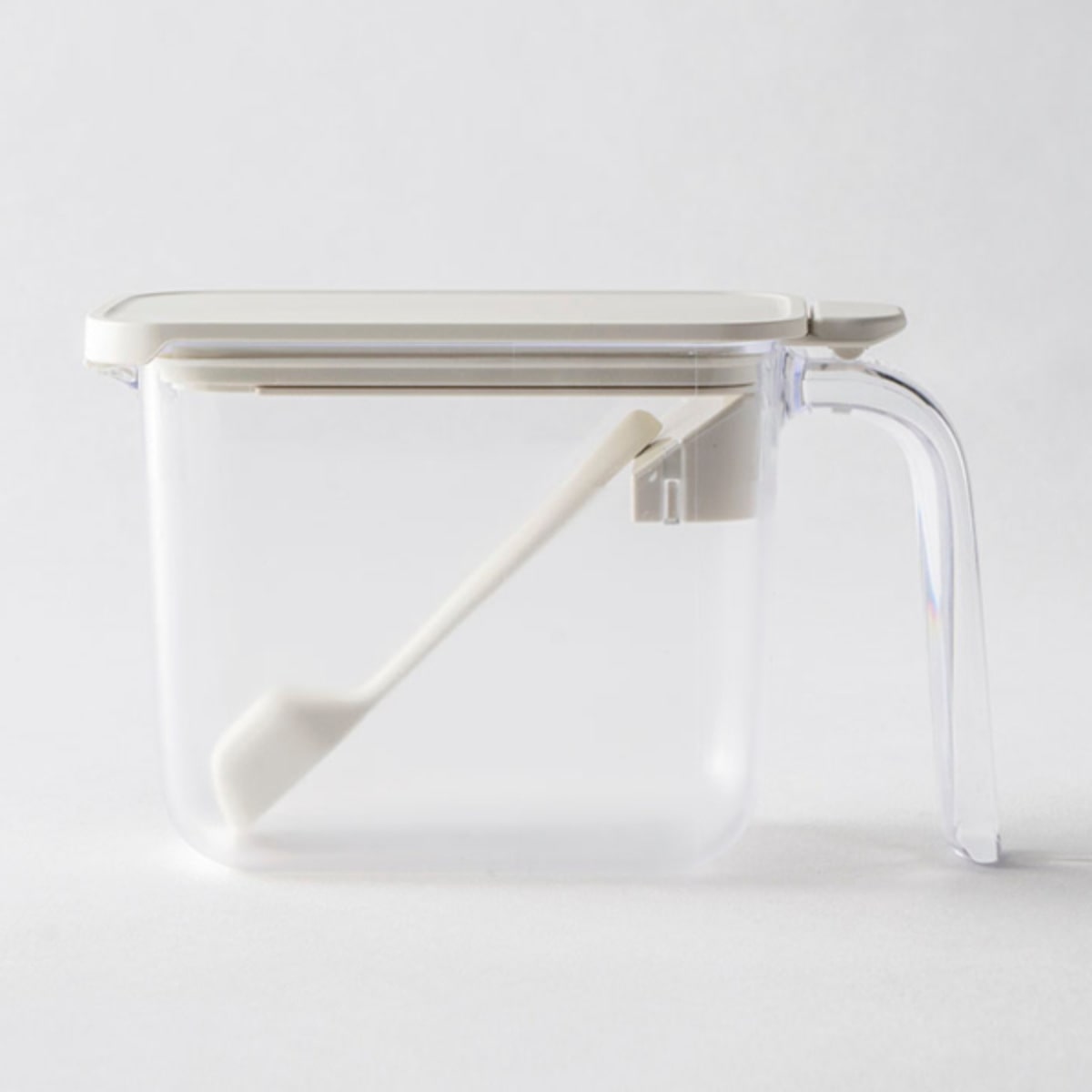 | 材質 | ケース:スチロール樹脂(耐熱温度:約70度) フタ、すり切り板、スプーン、ボタン:ABS樹脂(耐熱温度:約80度) パッキン:シリコーンゴム(耐熱温度:約200度) |