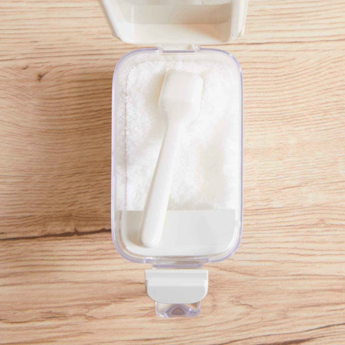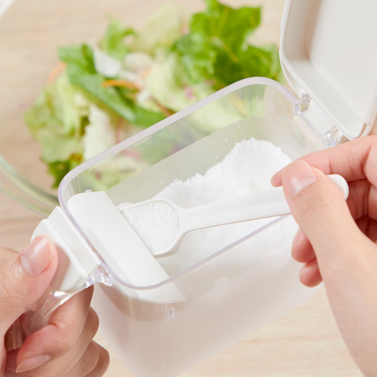 調味料はさらさらで取り出しやすく、買ったときのおいしさが保たれている。しっかりフタが閉まって湿気や乾燥から守り、開けたての状態を保ちます。そして、ワンタッチで簡単オープン仕様の密閉性と操作性を兼ね備えた、使う人に寄り添う収納用品のシリーズです。